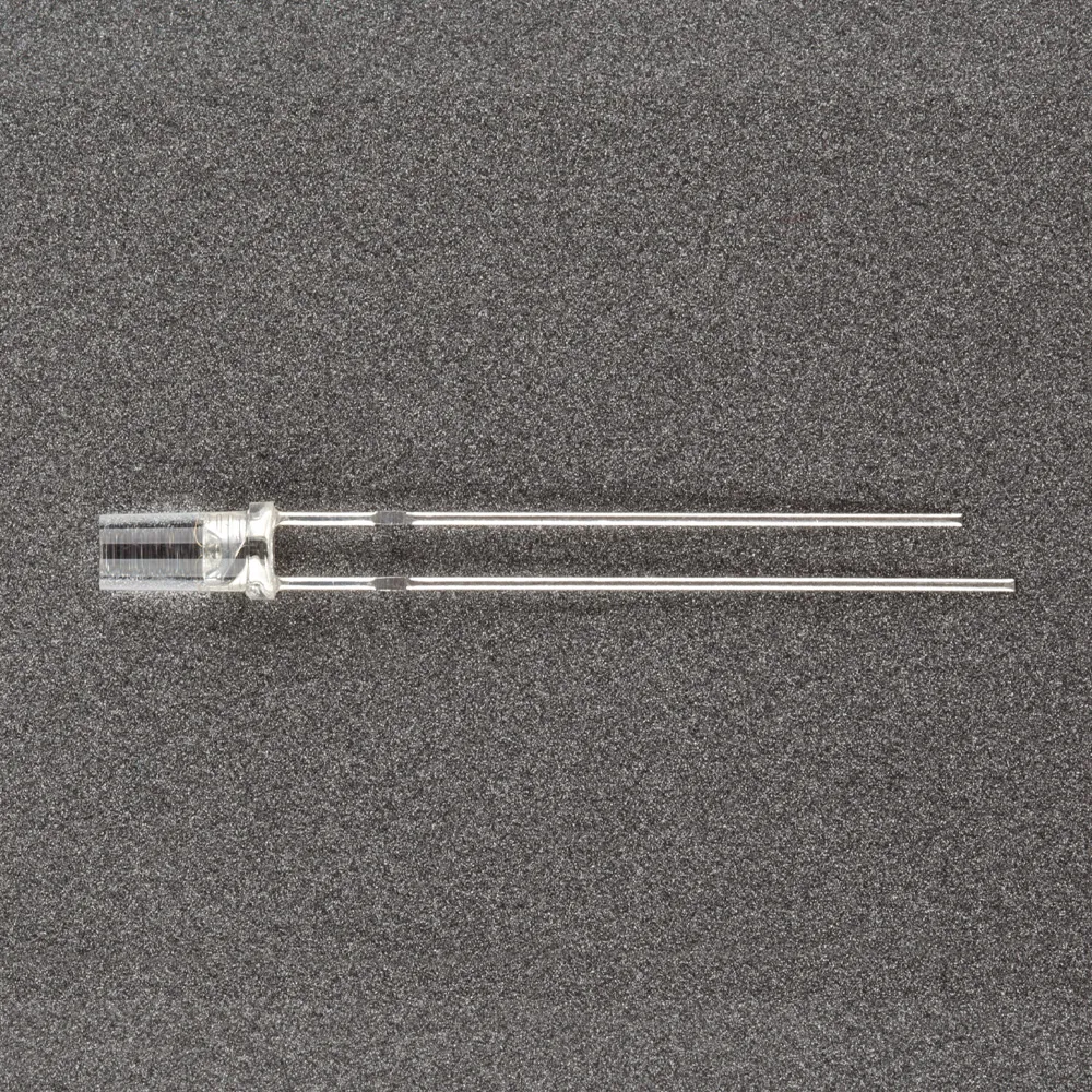 Поставка под заказ от 5000 шт. Выводной цилиндрический светодиод, d=3 мм, прозрачная линза. Цвет свечения белый. Угол излучения 100°. Сила света Iv=1000-2500 мкд при If=20 мА. VF=2.9-3.3 В.