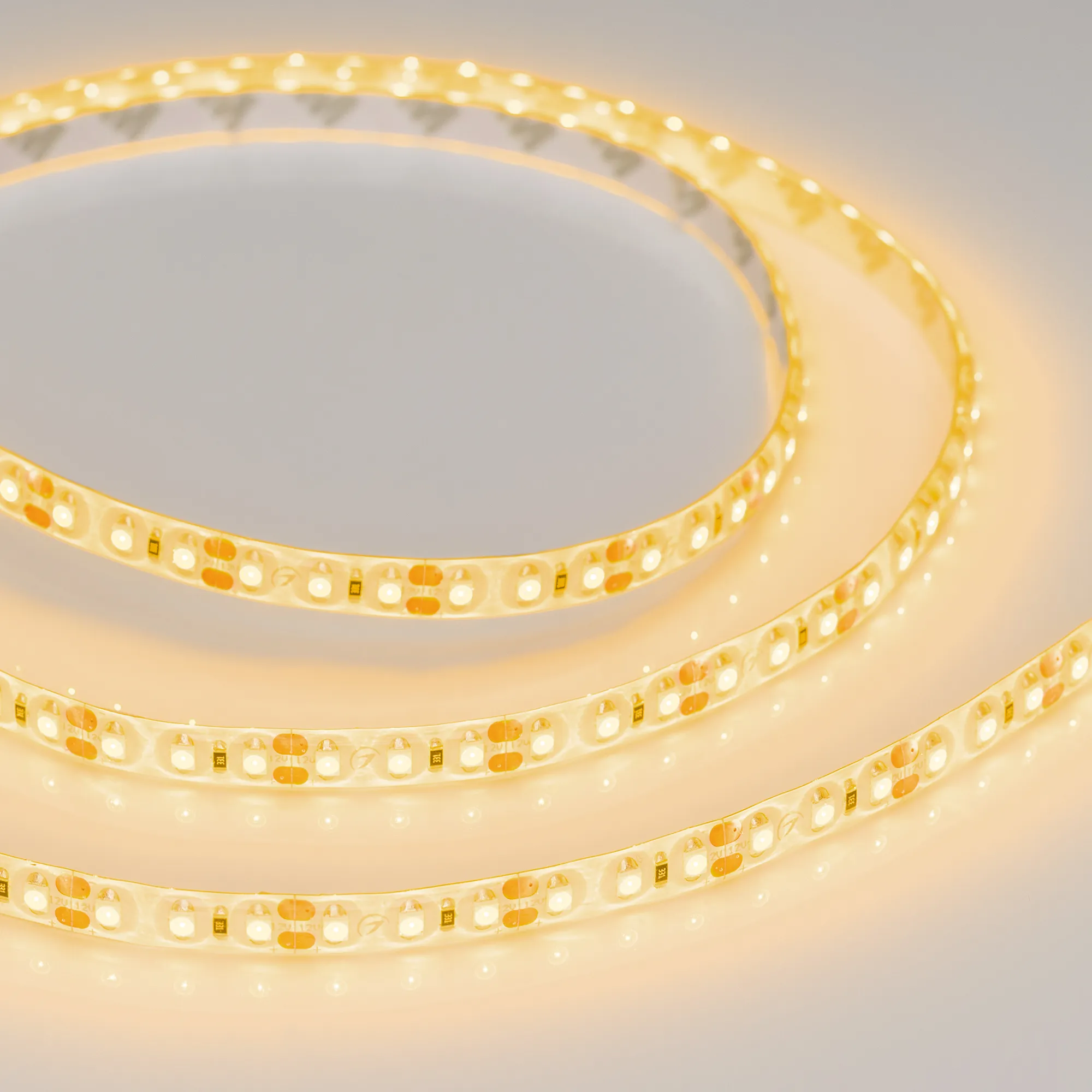 Герметичная IP65 (силикон поверх платы) гибкая лента LUX, светодиоды 2X smd 3528, 120шт/м (600шт на 5м), белая плата 8мм, скотч 3М. Цвет ЖЁЛТЫЙ. Питание 12В, мощность 9,6 Вт/м (48 Вт на 5м), угол 120°. Размеры 5000х8х2,2мм. Мин.отрезок 25мм (3 LED). Цена за 1м.