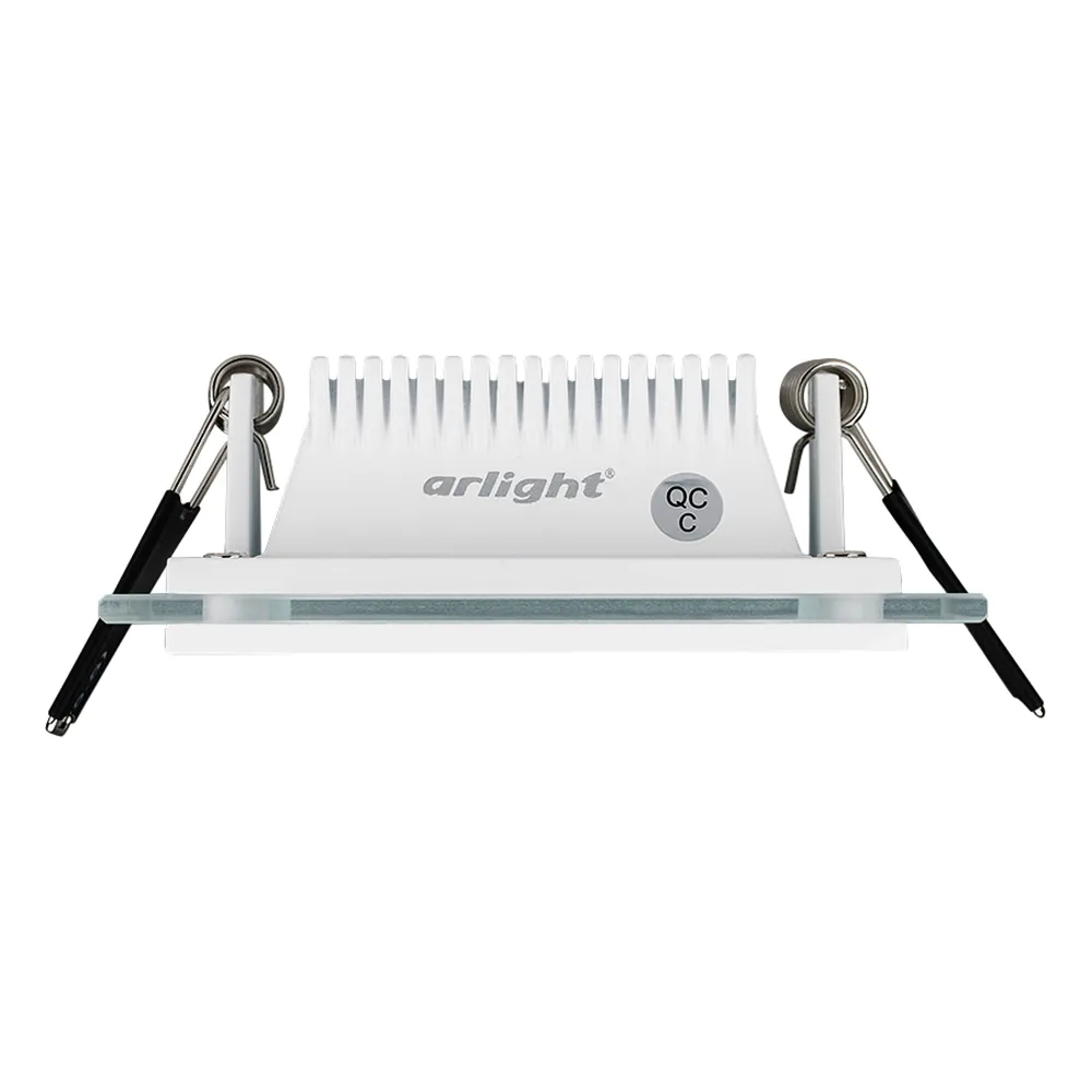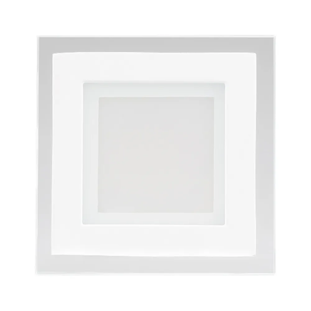 Стеклянная квадратная панель 6Вт / ДНЕВНОЙ 4000-4500K / 430лм / 120°. Размер 96x96x40мм (в отверстие 75x75мм). Корпус белый. Питание от сети 230VAC, драйвер в комлекте 300mA 15-25V. Диапазон рабочих температур -10°..+40°C. Для помещений.