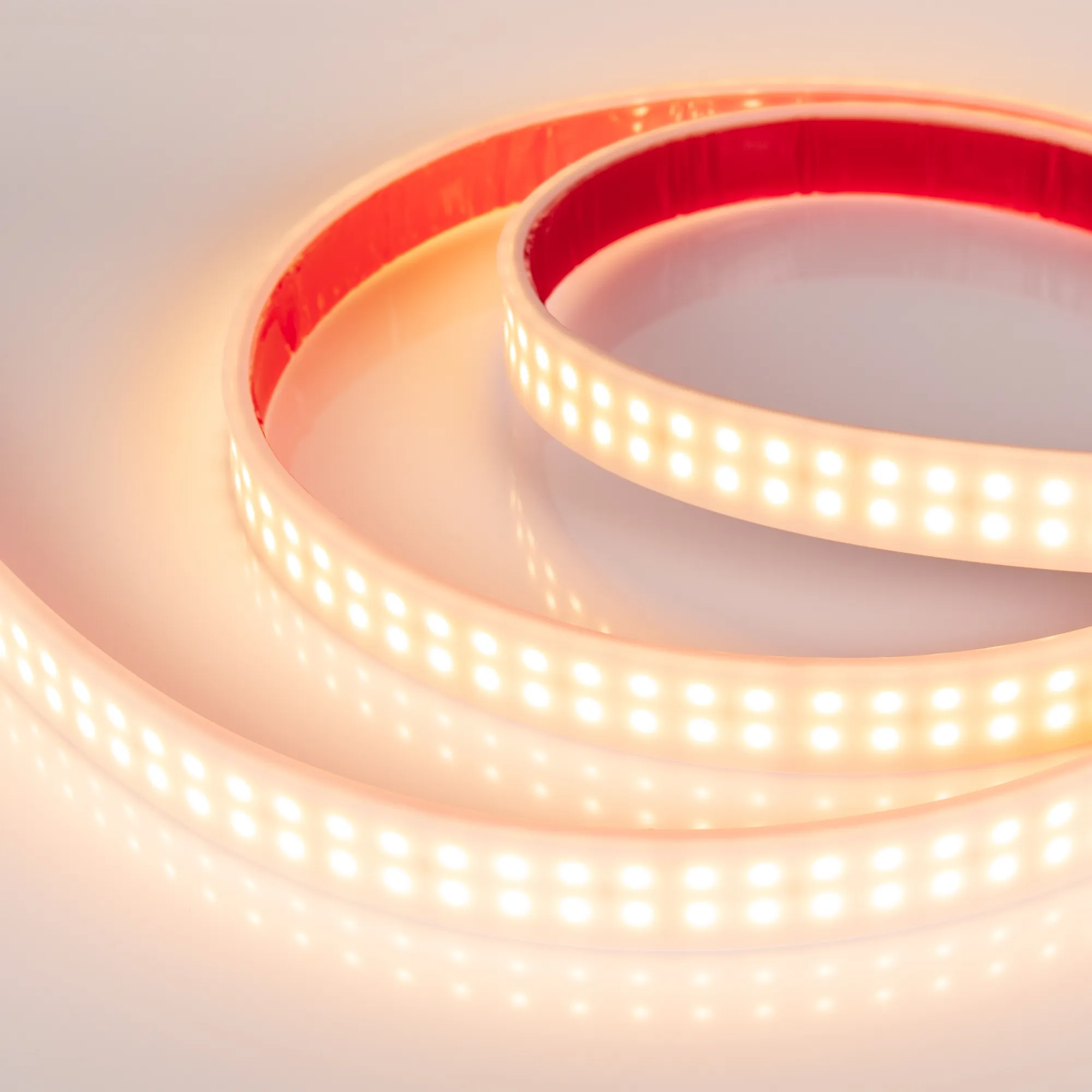 Широкая герметичная IP66 (плата в матовой силикон.трубке) гибкая лента LUX, светодиоды 2x2 (2 ряда) smd 3528, 240шт/м (1200шт на 5м), белая плата 15мм, скотч 3М. Цвет БЕЛЫЙ ТЕПЛЫЙ 2600-2800K.Питание 24В, мощность 19,2 Вт/м (96 Вт на 5м), угол 120°. Размеры 5000x17.5x5.5мм. Мин.отрезок 50мм (12 LED). Цена за 1м.