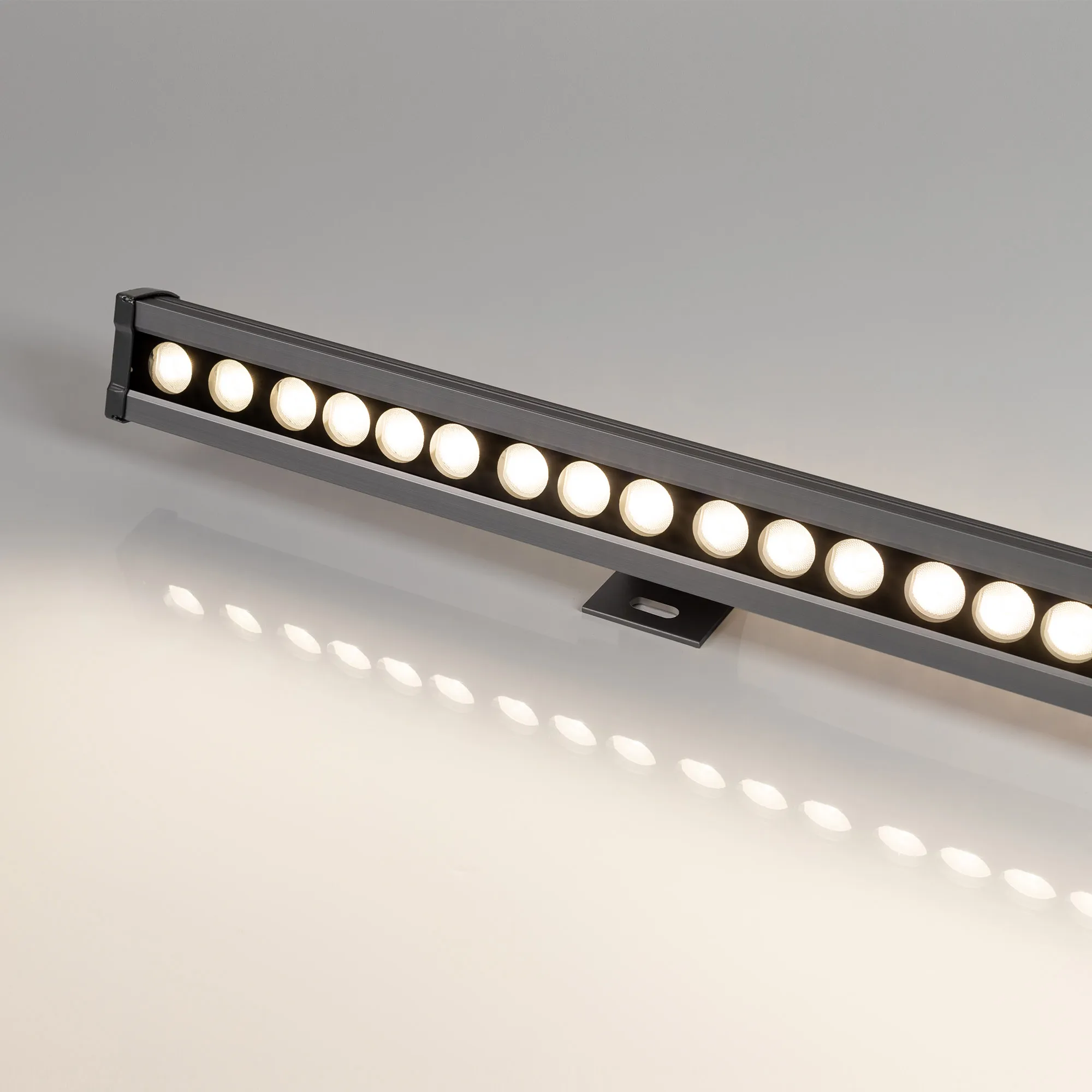 Линейный светодиодный прожектор. Мощность 36W, напряжение питания AC 230V. Светодиоды OSRAM 36 штук. Цвет светодиодов дневной белый 4000K, световой поток 3600 Lm, угол рассеивания 30°. Корпус: алюминиевый сплав и армированное стекло. Цвет корпуса серый, степень влагозащиты IP65. Габариты 1000x78x55мм.