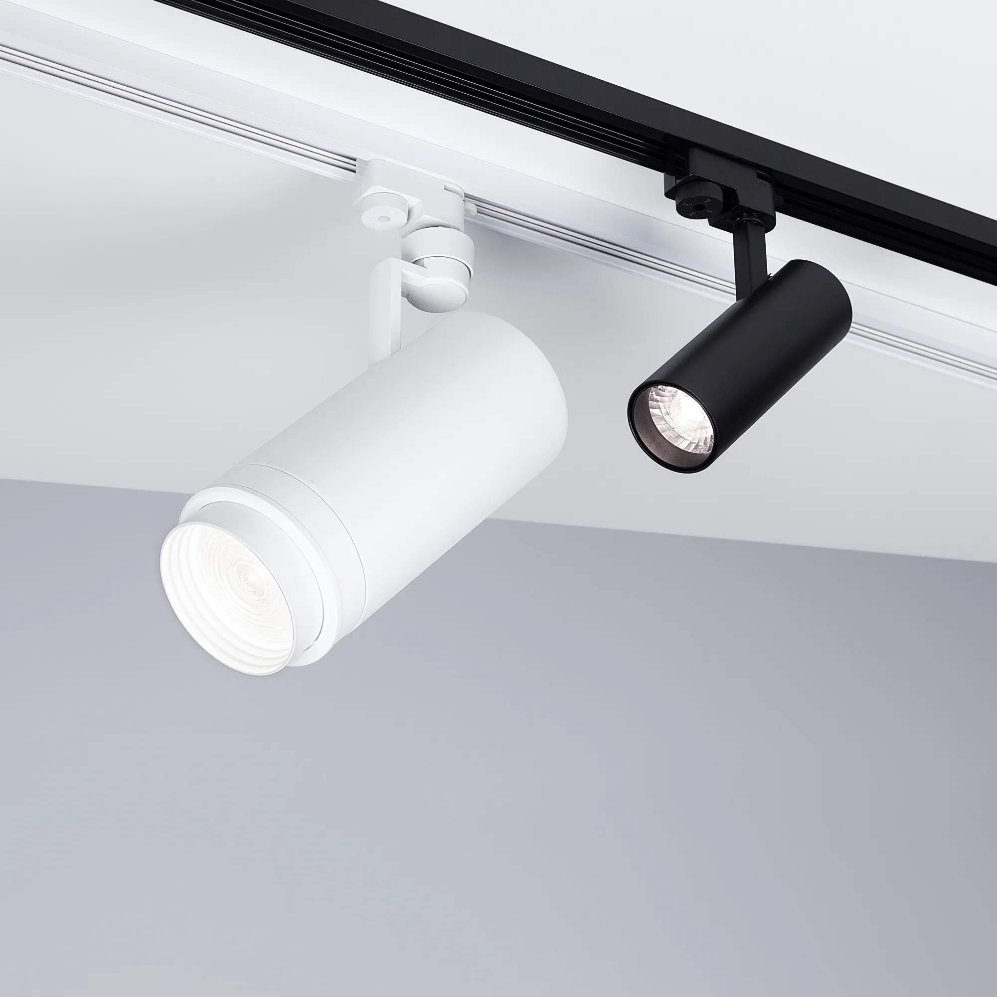 Светильник подвесной для треков/шин 2 провода, 10Вт. Цвет свечения БЕЛЫЙ 6000K, световой поток 800-1000лм, регулируемый угол 20-60°, CRI>90. Корпус круглый, металл, цвет белый, IP20. Размеры DxHxL Ø67x180x155мм. Входное напряжение AC220-240V, мощность 10Вт. Драйвер встроенный (27-38V, 260mA).