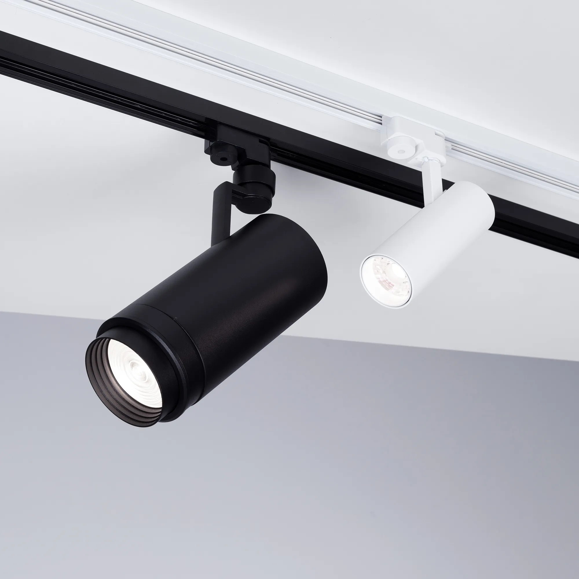 Поставка под заказ от 100 шт. Светильник подвесной для треков/шин 2 провода, 30Вт. Цвет свечения БЕЛЫЙ 6000K, световой поток 2400-3000лм, регулируемый угол 20-60°, CRI>90. Корпус круглый, металл, цвет черный, IP20. Размеры DxHxL Ø100x220x180мм. Входное напряжение AC220-240V, мощность 30Вт. Драйвер встроенный (30-40V, 750mA).