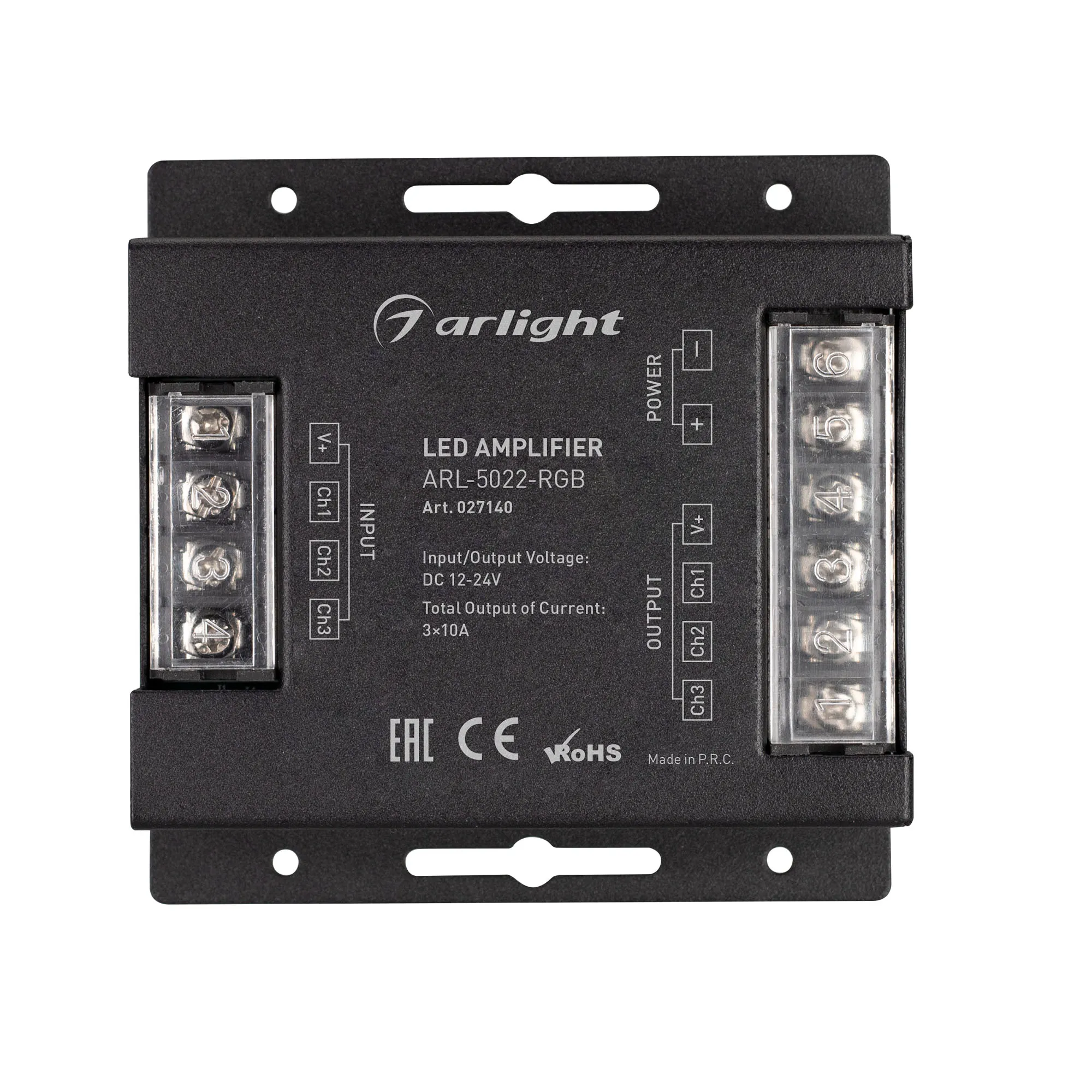Наши специалисты знают все о продукции Arlight и с радостью помогут Вам выбрать комплектующие к товару "Усилитель ARL-5022-RGB (12-24V, 3x10A, 360-720W) (Arlight, IP20 Металл, 3 года)", или другие товары из раздела "Усилители [5-24V]".