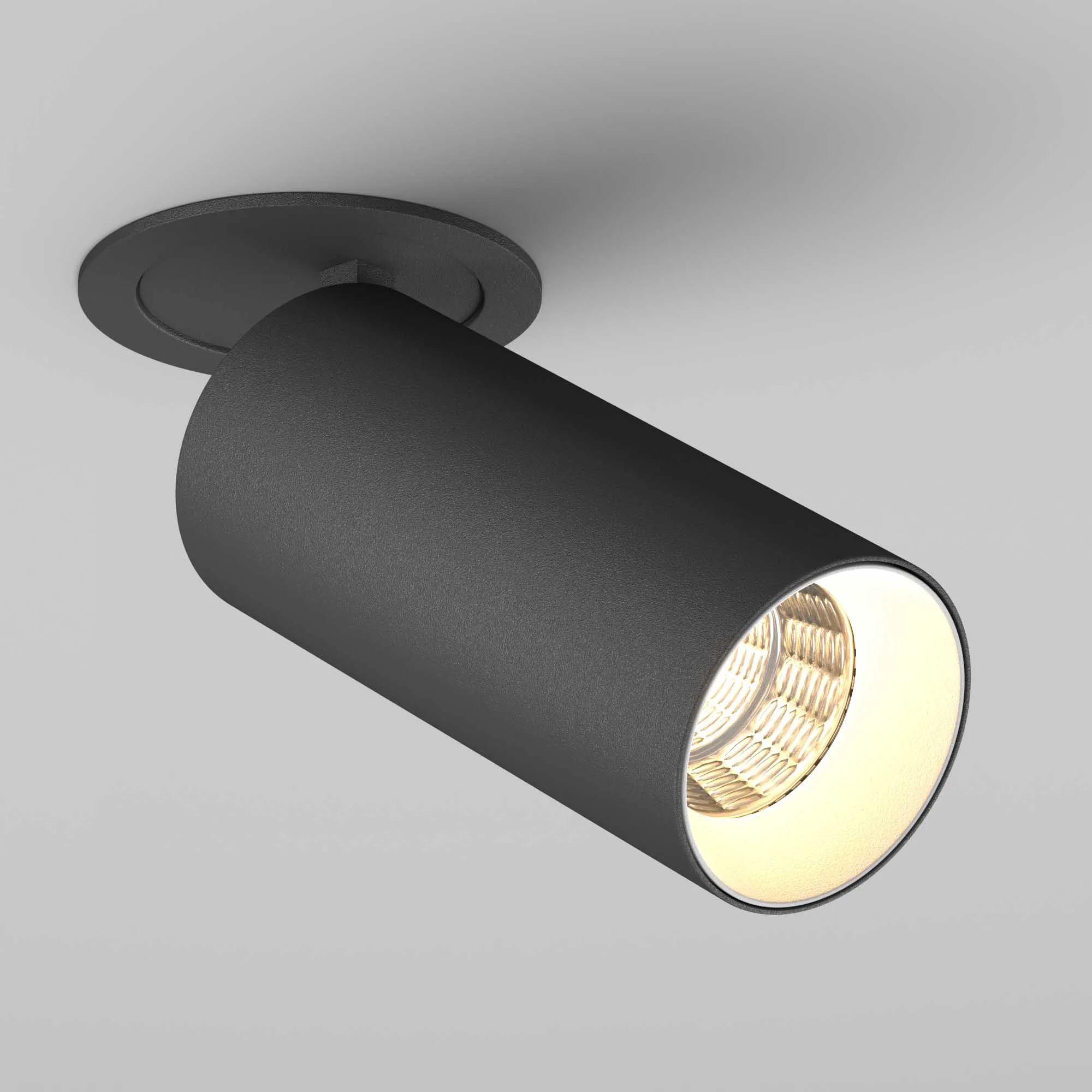 Встраиваемый откидной светильник 8Вт, черный круглый корпус, белая вставка, металл.