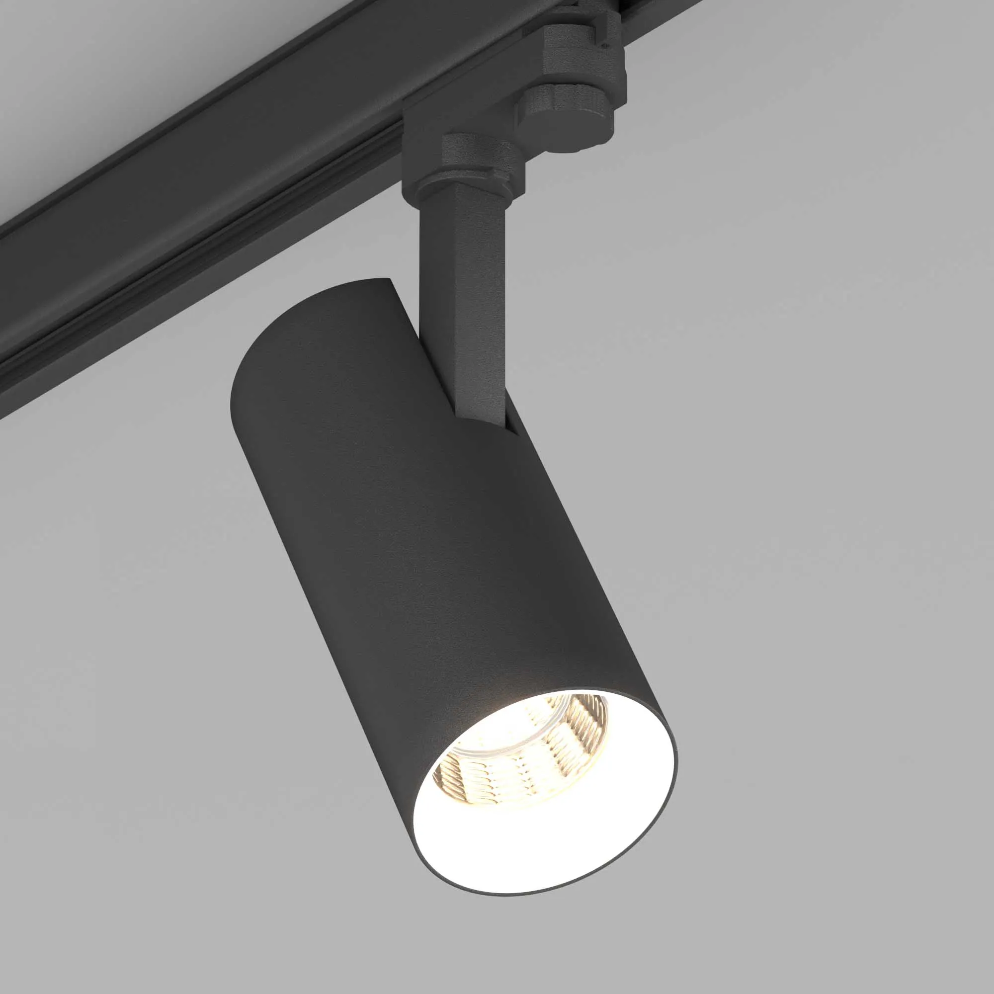 Трековый светильник 8Вт, черный круглый корпус, белая вставка, металл.