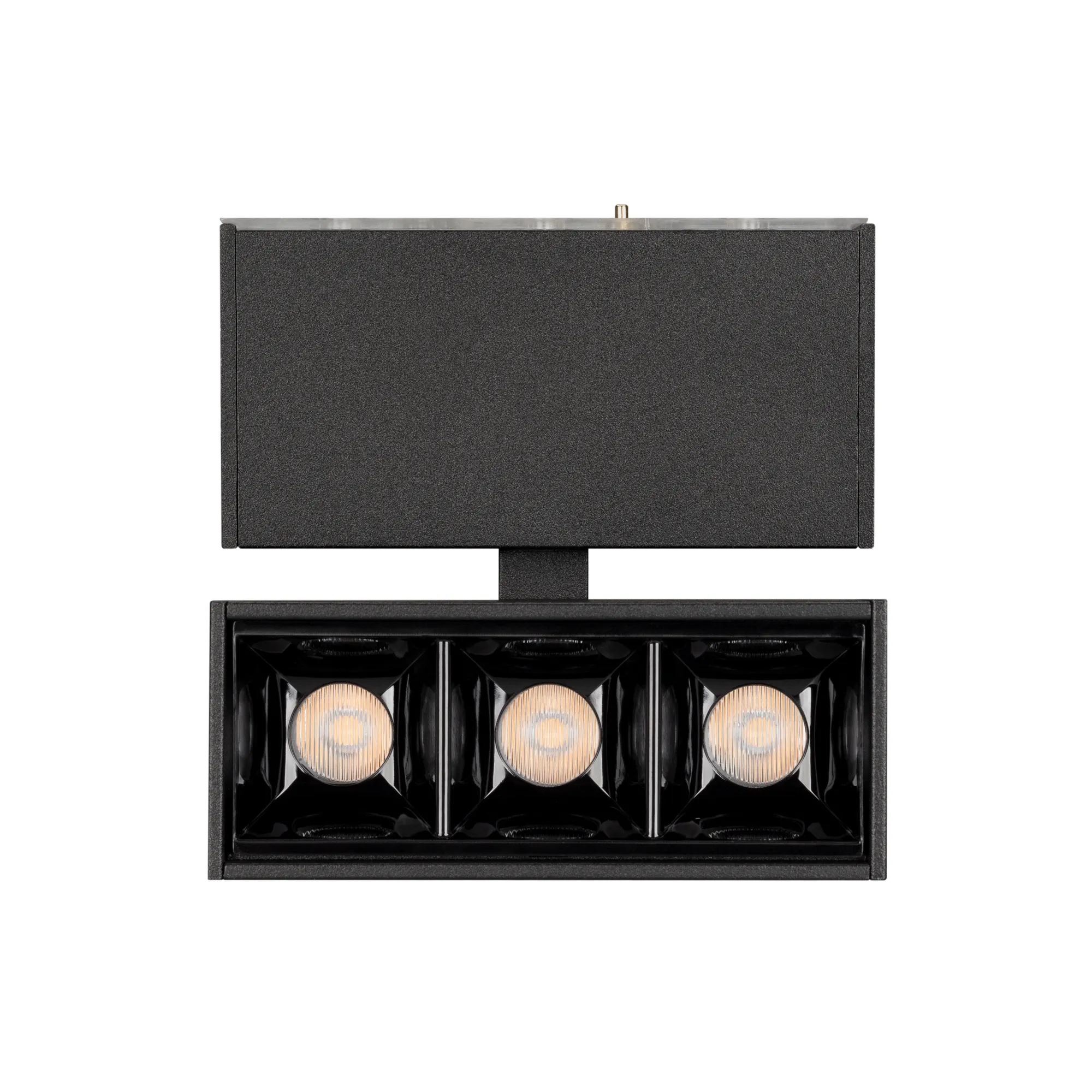 Светильник для магнитных треков шириной 45мм, 3Вт. Цвет свечения БЕЛЫЙ ТЕПЛЫЙ 3000K, световой поток 222лм, угол 15°, CRI>90. Корпус прямоугольный, металл, цвет черный, IP20. Размеры LxWxH 84x35x93мм. Входное напряжение DC24V, мощность 3Вт. Драйвер DС24V/AC230V поставляется отдельно. Диммируется только с 026407(1), 027633.