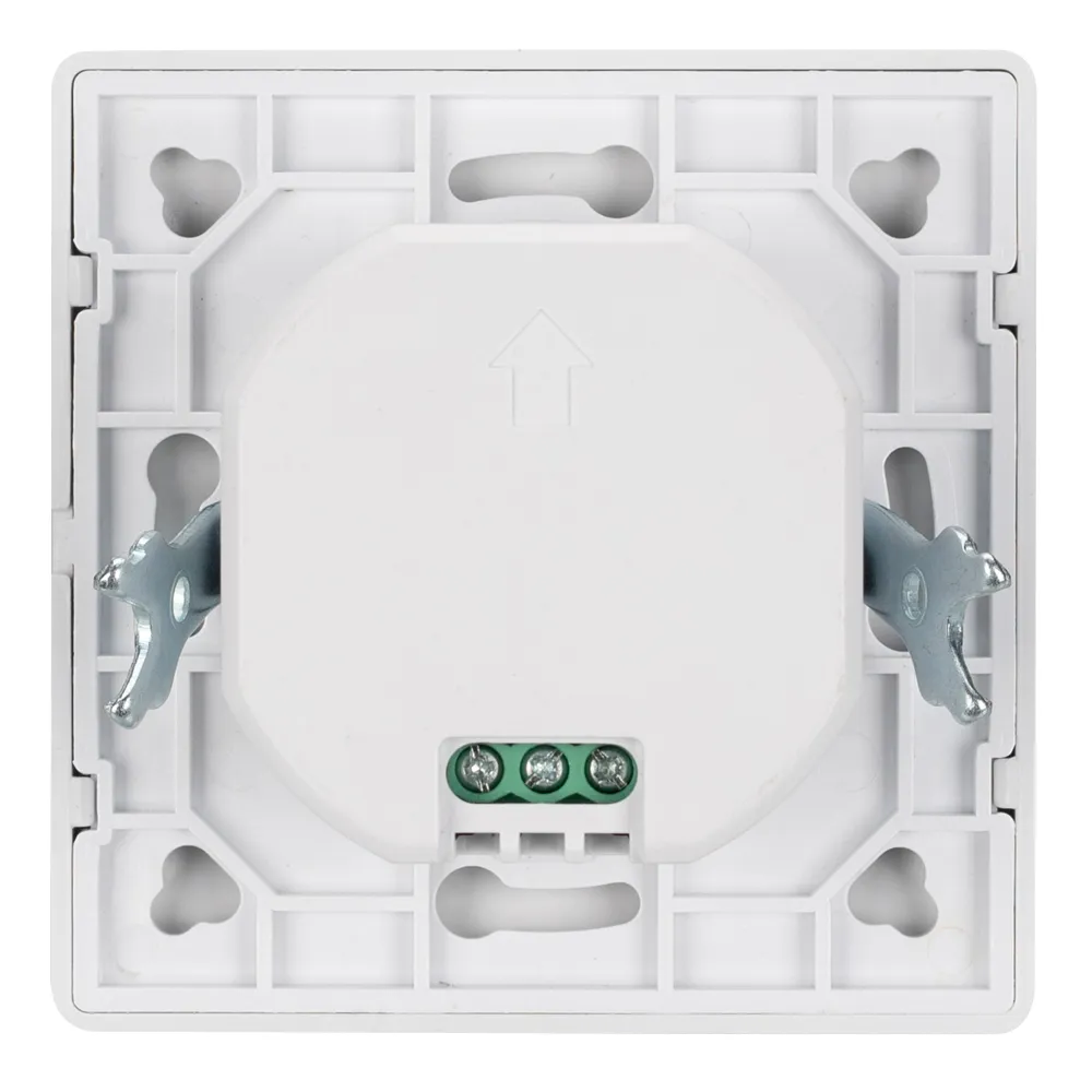 Микроволновый датчик движения, совмещенный с датчиком освещенности. Предназначен для встраивания в стену. Угол обнаружения 180°. Может срабатывать через двери и тонкие стены. Настройки: время отключения (10 c – 12 мин), радиус зоны срабатывания (5 - 15 м), освещенность (0,1 - 2000 люкс). Максимальная нагрузка 1200 Вт (для ламп накал-я и галогенных), 300 Вт (для светодиодных ламп), размеры (LxWxH) - 80x80х32 мм.