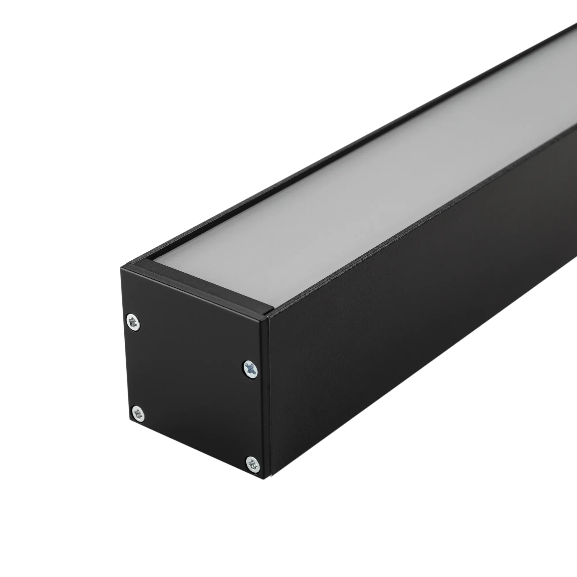 Комплект с экраном. Алюминиевый профиль для светодиодных лент и линеек. Цвет - черный RAL9005 (порошковая окраска). Габаритные размеры (L×W×H): 2500x35x35 мм. Ширина площадки для ленты 31 мм. Аксессуары приобретаются отдельно.