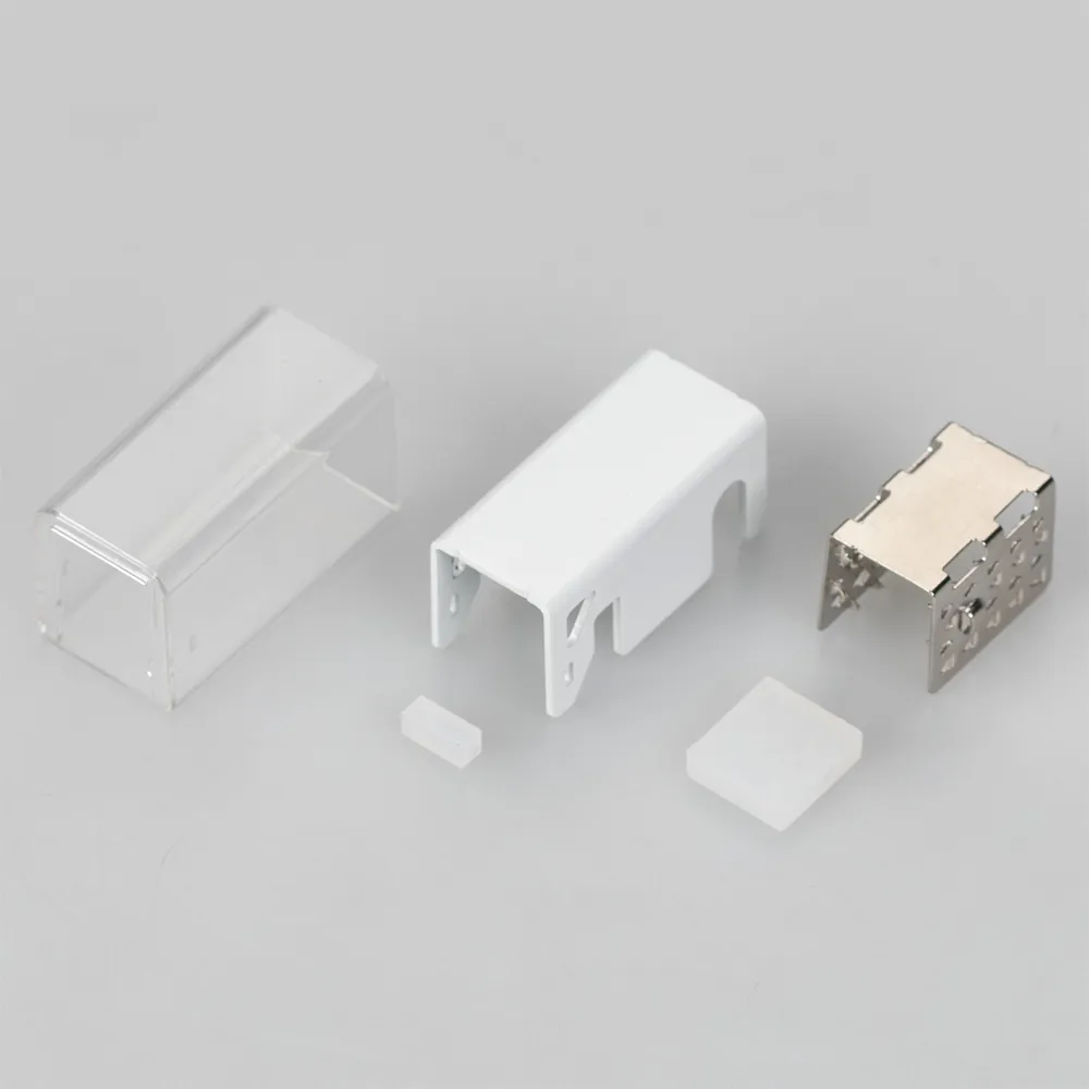 Герметичный коннектор питания для гибкого неона MOONLIGHT, сечение 17х12мм, цвет белый. Горизонтальный вывод провода. Подключение питания без пайки, IP54, длина провода питания 500мм.