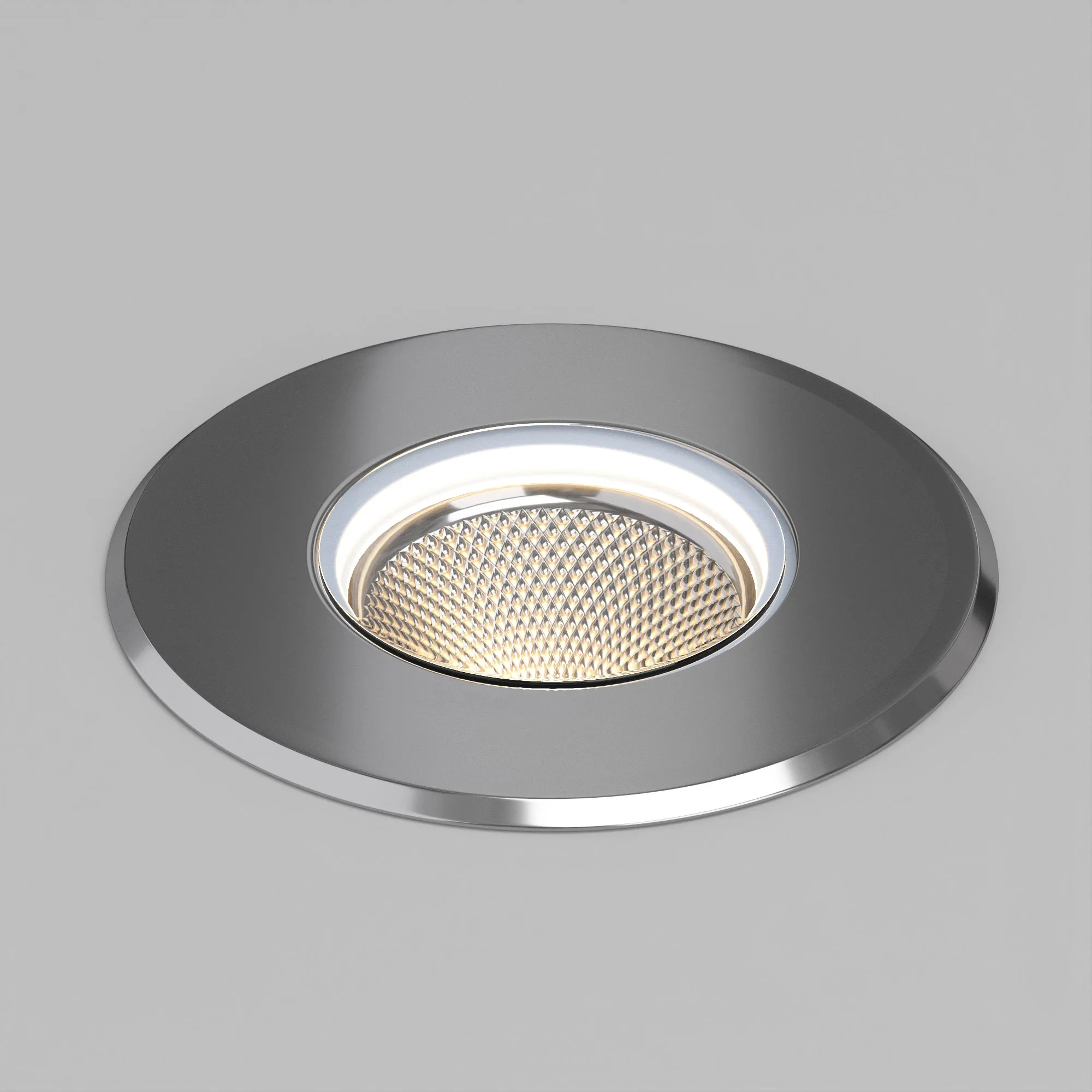 Встраиваемый светодиодный светильник для грунта и пола. Мощность 15Вт, световой поток 1340лм, цвет ТЕПЛЫЙ 3000К. CRI(Ra)>80, угол 20°. Круглый влагозащищенный корпус IP67, нержавеющая сталь. Экран закалённое стекло. Питание AC230V, 15Вт. Размер DxH Ø110x85мм. Установка в отверстие DxH Ø100x120мм.