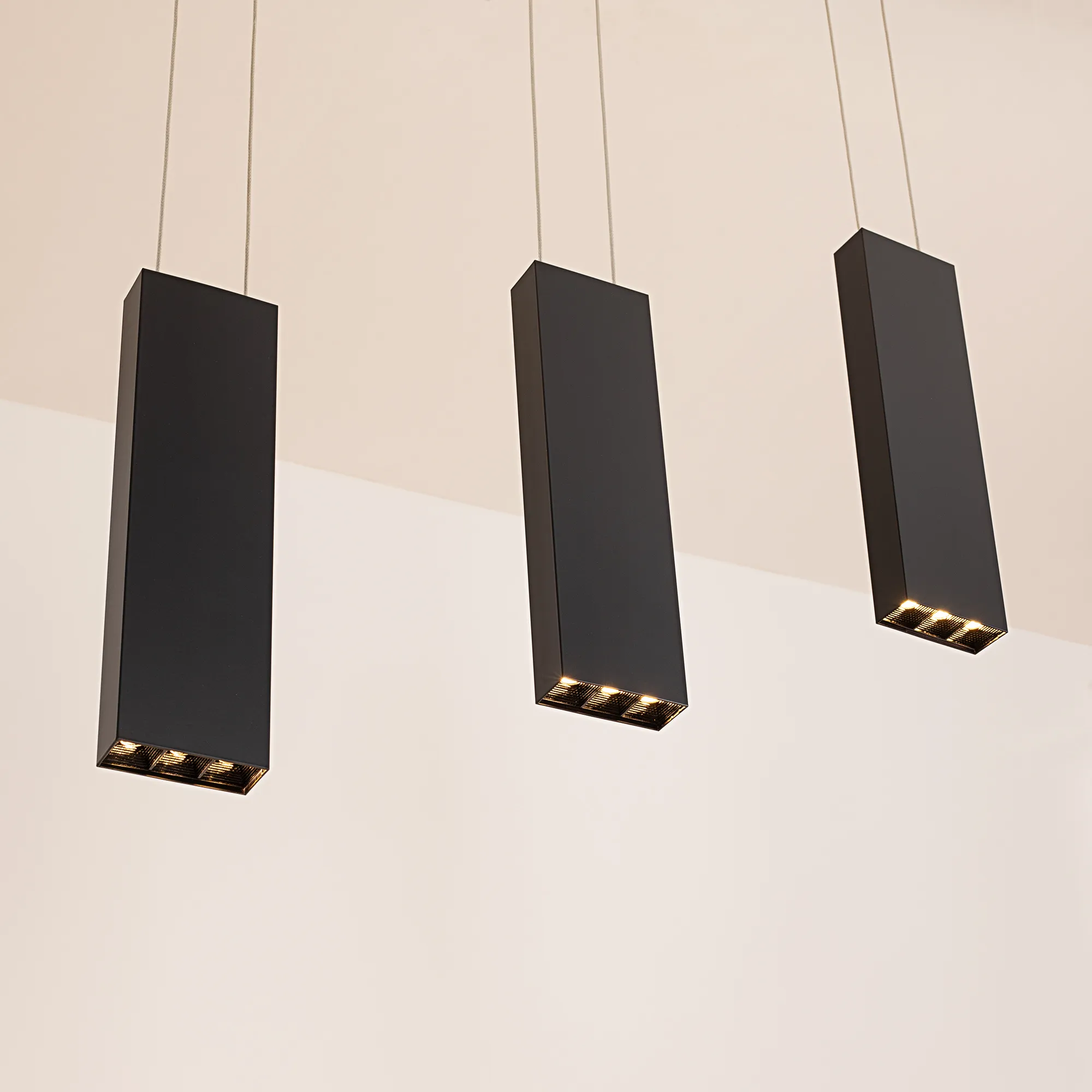 Подвесной светильник 4х6Вт, черный корпус, материал алюминий. Цвет ТЕПЛЫЙ БЕЛЫЙ 3000K, св.поток 2100лм, CRI(Ra)>80, угол 34°. Размер 835x50x1200мм. Питание AC220-240, драйвер в комплекте (30-42V, 600mA), 24Вт. Гарантия 3 года.