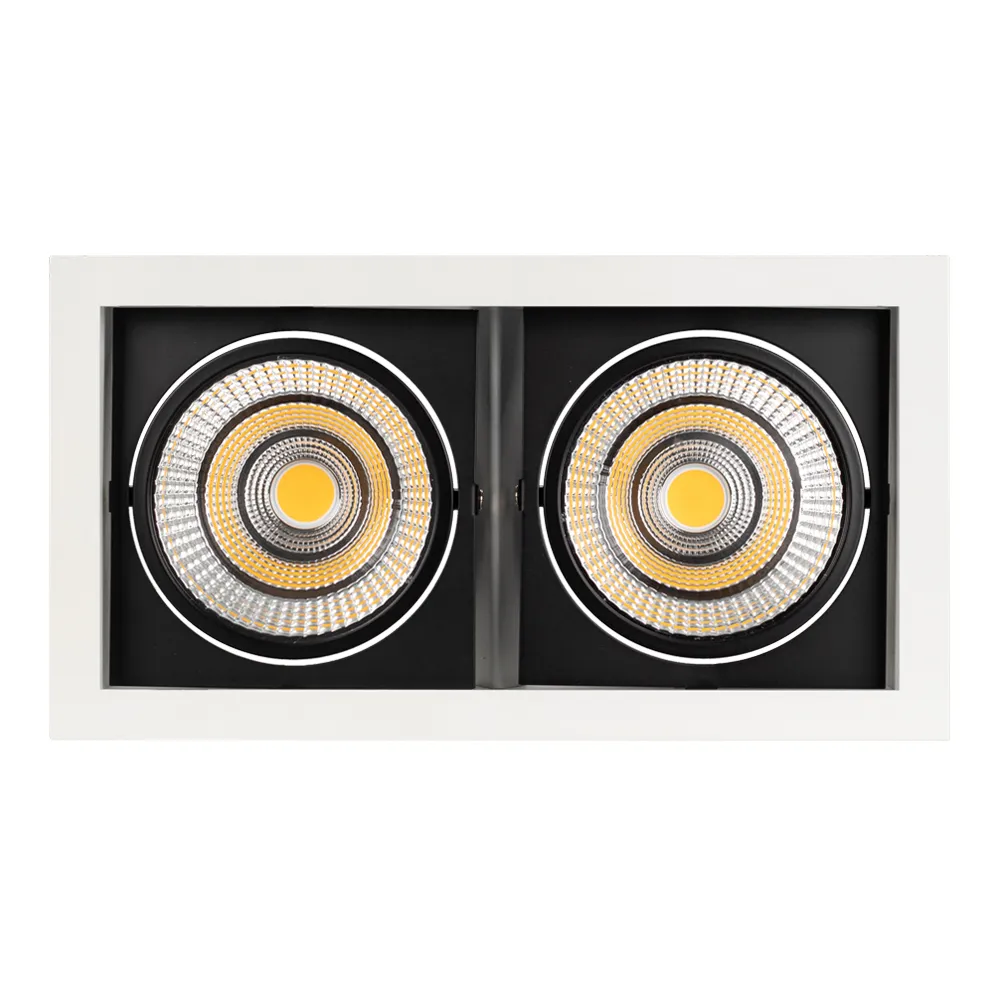 Встраиваемый карданный светильник. Угол 30° / 2x25Вт / БЕЛЫЙ 6000K / 4800лм, CRI>90. Корпус из белого алюминия с черными вставками. Питание AC220-240V, 50Вт, 700mA 30-42V, драйвер в комплекте, 2 шт. Размеры LxWxH: 283х152x100мм, отверстие для установки 265x135мм.