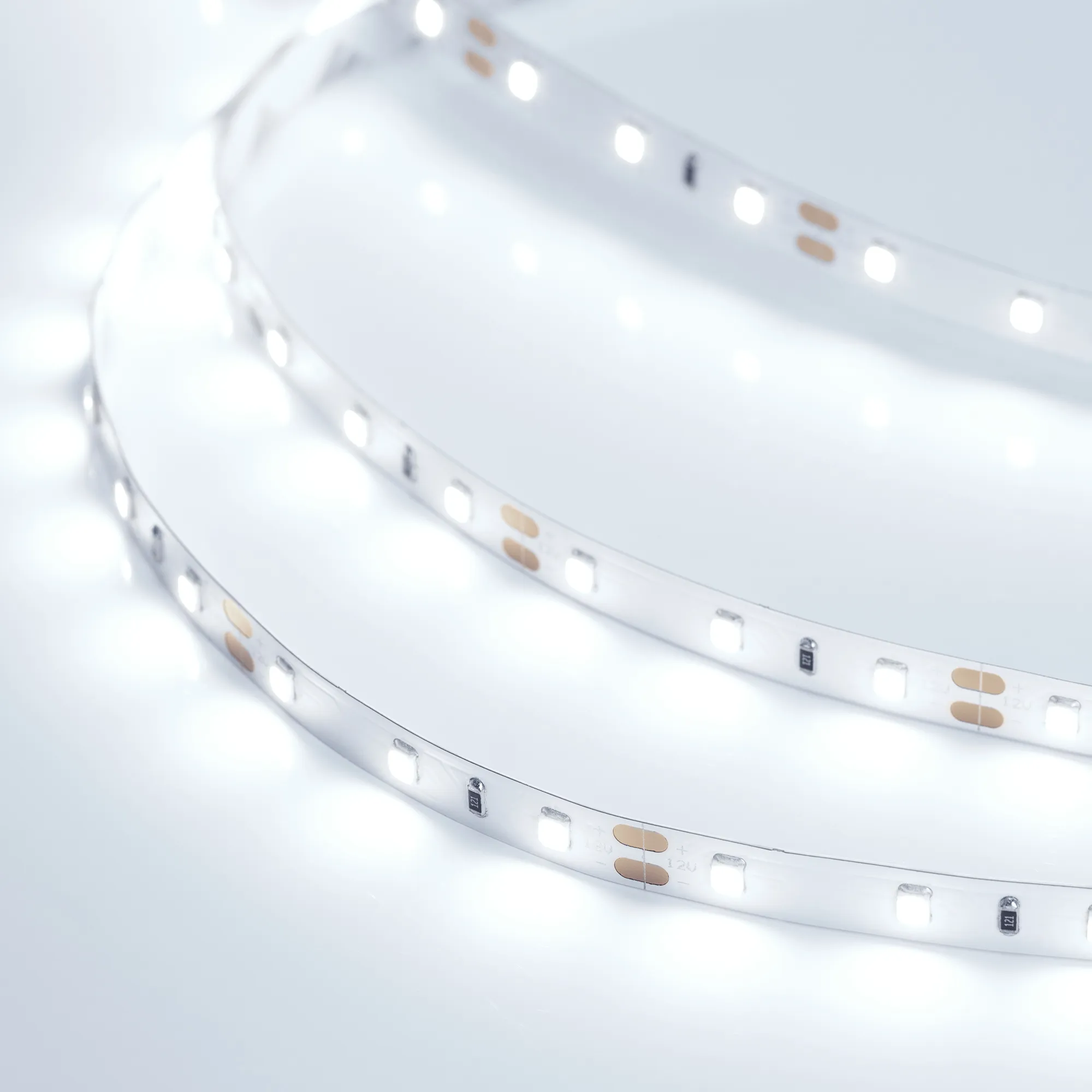 Поставка под заказ от 600 м.Гибкая лента PRO, светодиоды smd 2835, 60шт/м (300шт на 5м), белая плата 8мм, скотч 3М. Цвет ХОЛОДНЫЙ 7700-9600K. Питание 12V, мощность 7.2 Вт/м (36 Вт на 5м), угол 120°, цветопередача CRI>85. Размеры 5000х8x1.5мм. Мин.отрезок 50мм, 3 шт светодиода. Пакет 5м. Цена за 1м.