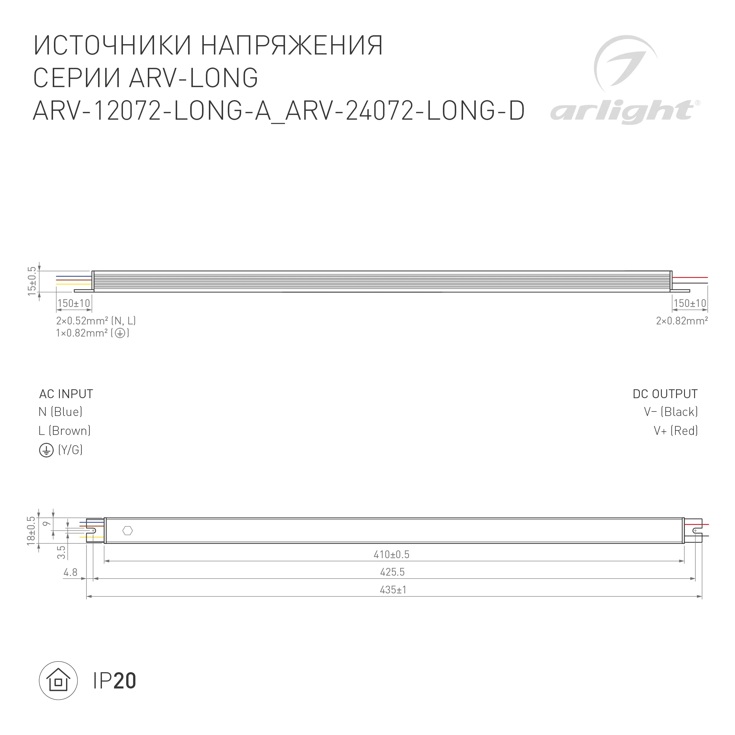 Блок питания ARV-24072-LONG-D (24V, 3A, 72W) (Arl…