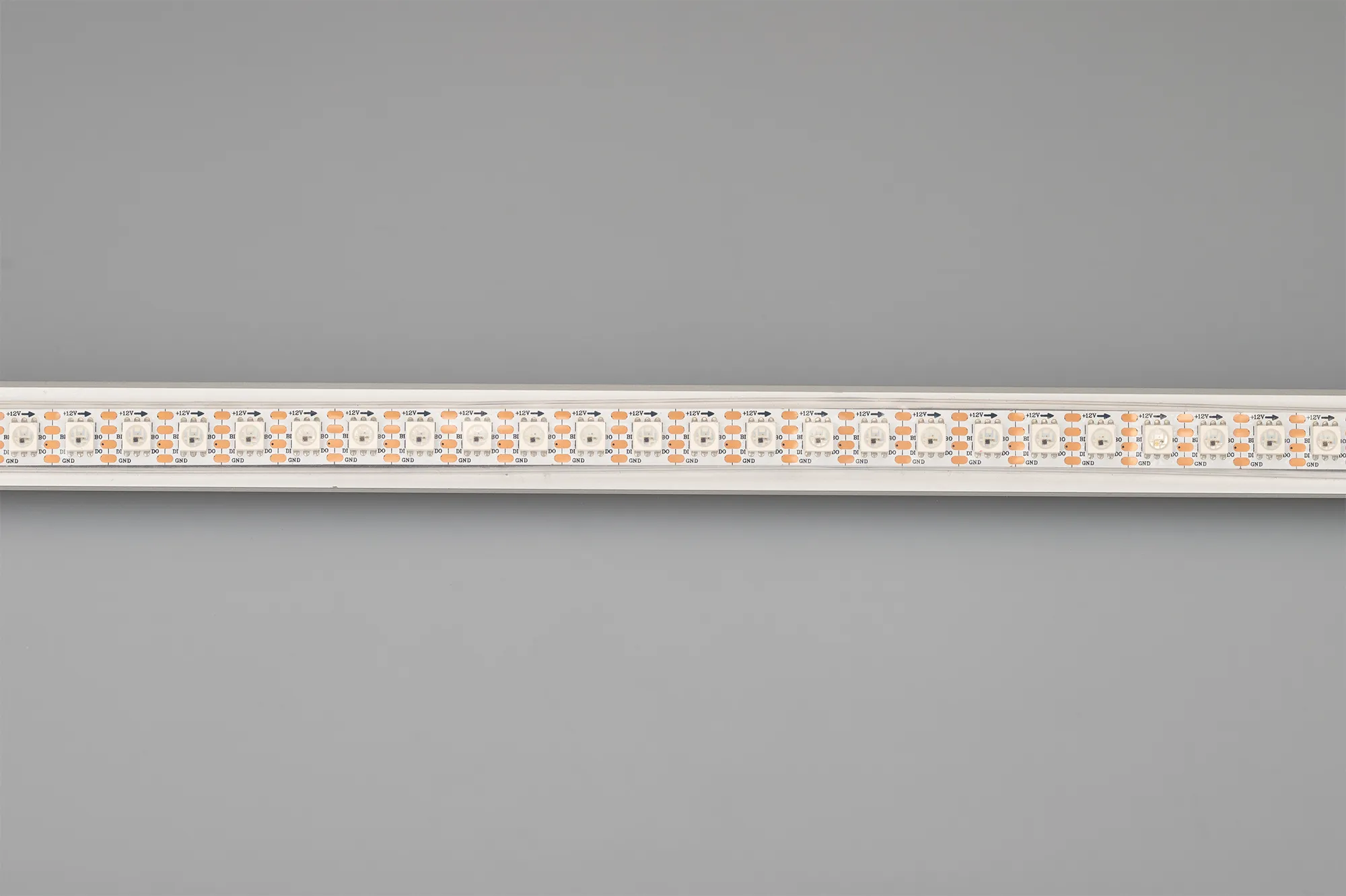 Поставка под заказ от 495 м. Герметичная лента “Бегущие огни” с драйвером 2815 (битый пиксель не влияет на передачу сигнала далее по ленте), в силиконовой трубке (IP66), со СКОТЧЕМ 3M на обрат. стороне, встроенный в ленту контроллер с циклическим автозапуском 300 программ (Auto mode) и подкл-ем внеш. контроллера, питание 12 В. Длина 5м, 500шт LED RGB 5060, 100 pixel/m (1 pixel = 1 LED). Драйвер+ LED в одном кристалле, макс. мощн-ть 14,4 Вт/м. Ширина 12 мм. Необходима подводка питания с 2 сторон ленты. Герметичные круглые коннекторы.