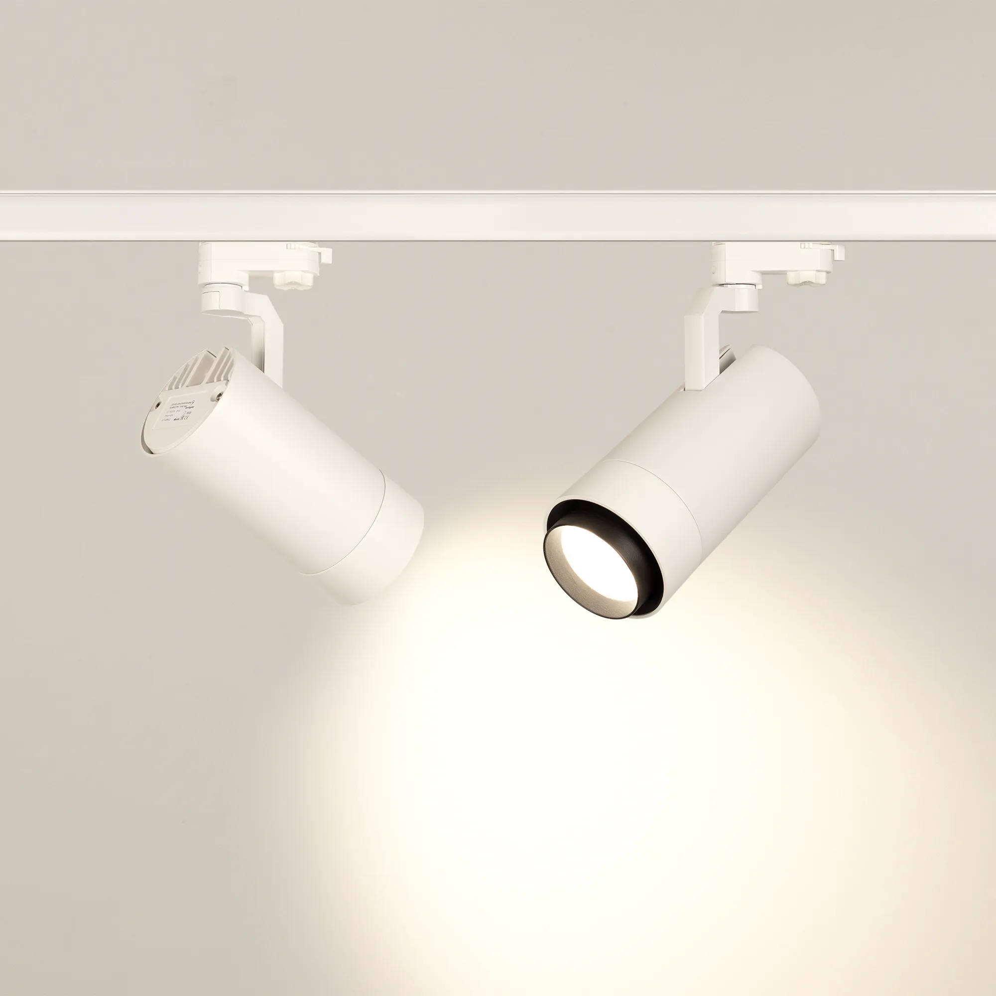 Поставка под заказ от 100 шт. Светильник подвесной для треков/шин 4 провода, 40Вт. Цвет свечения БЕЛЫЙ ТЕПЛЫЙ 3000K, световой поток 3600лм, регулируемый угол 20-60°, CRI>90. Корпус круглый, металл, цвет белый, IP20. Размеры DxL Ø95x191мм. Входное напряжение AC220-240V, мощность 40Вт. Драйвер встроенный (30-42V, 1000mA).