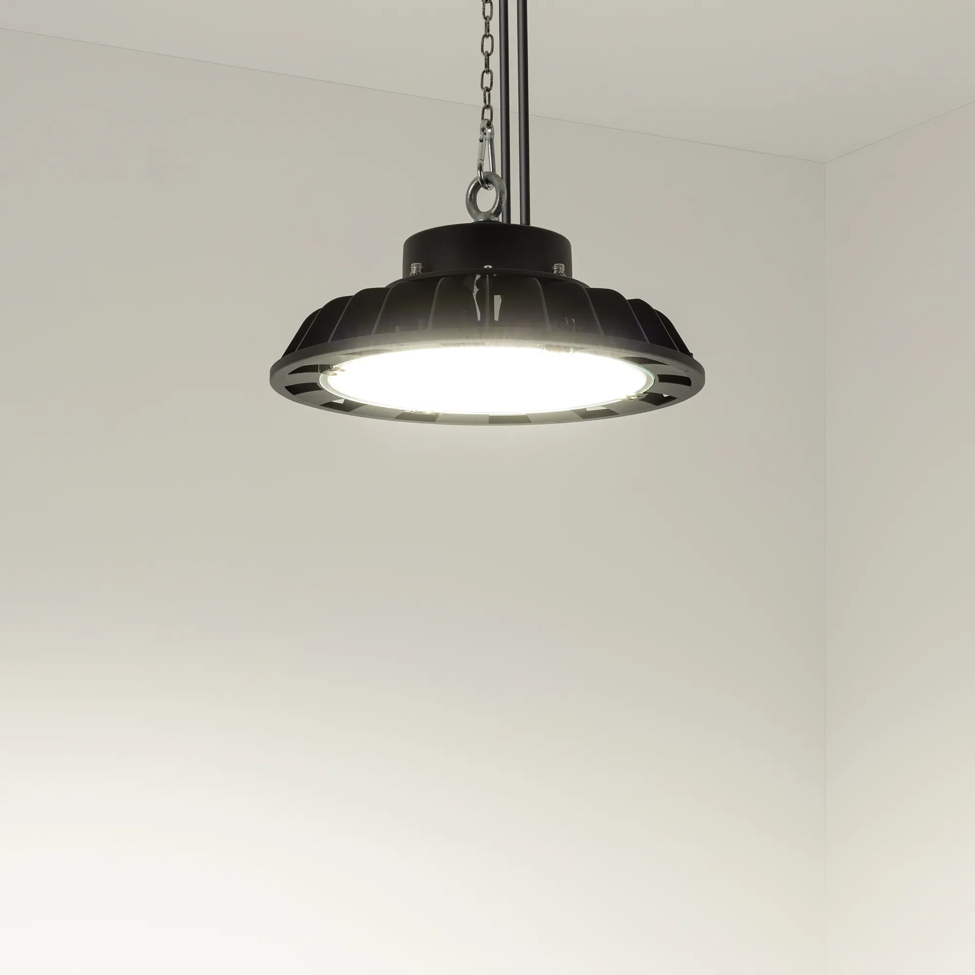 Поставка под заказ от 200 шт. Светильник для освещения складских и промышленных помещений. Мощность 80W, напряжение питания AC 220-240V/50Hz.CRI 80. Тип светодиодов SMD2835, с групповой оптической линзой. Цвет свечения ДНЕВНОЙ 5000K, световой поток 14400 Lm, угол рассеивания 120°. Цвет корпуса серый, темперированное стекло, степень влагозащиты IP65. Диаметр 295мм. Рым-болт в комплекте.
