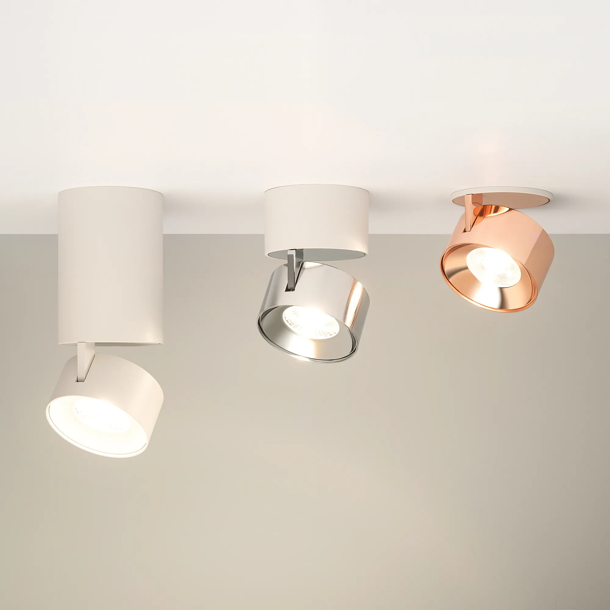 Мощность 9 Вт, св. поток 550 лм, 79 лм/Вт, теплый 3000 K, CRI90, угол 36°. Цвет Хром, круглый корпус из Алюминий, степень защиты IP20. Размер: 78*62 мм. Монтаж На базу PLURIO. Драйвер 38 В, 200 мА, пульсация <1%.