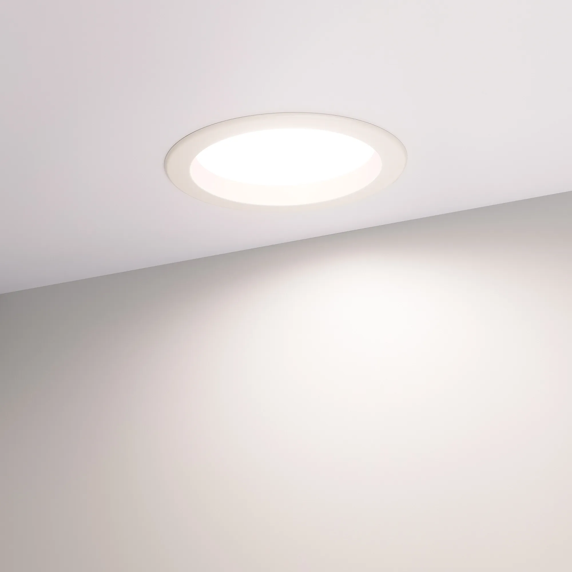 Встраиваемый светильник "Даунлайт" 20 Вт. Цвет свечения БЕЛЫЙ 6000 К, или ДНЕВНОЙ 4000 К, или ТЕПЛЫЙ 3000 К, выбор цвета свечения при установке, фиксированный. Световой поток 1600-1720 лм, угол 90°, CRI>80. Белый корпус. Питание AC220-240V. Габариты: Ø 200 х 68 мм, врезное отверстие Ø 168-178 мм. Драйвер в комплекте (20.5-34.5V, 700mA).