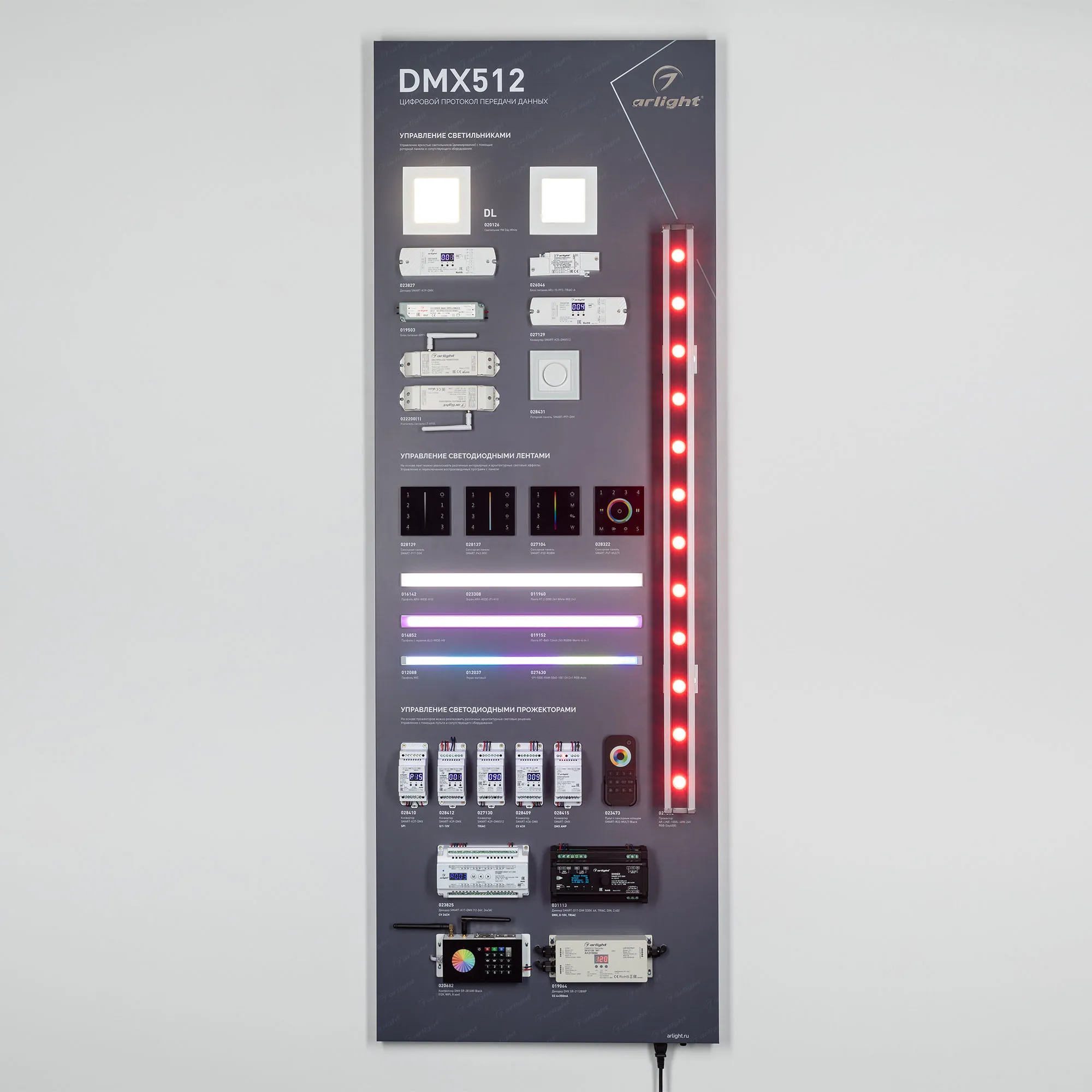 Стенд Управление светильниками DMX512 E34 1760x600mm (DB 3мм, пленка, лого) (Arlight, -)