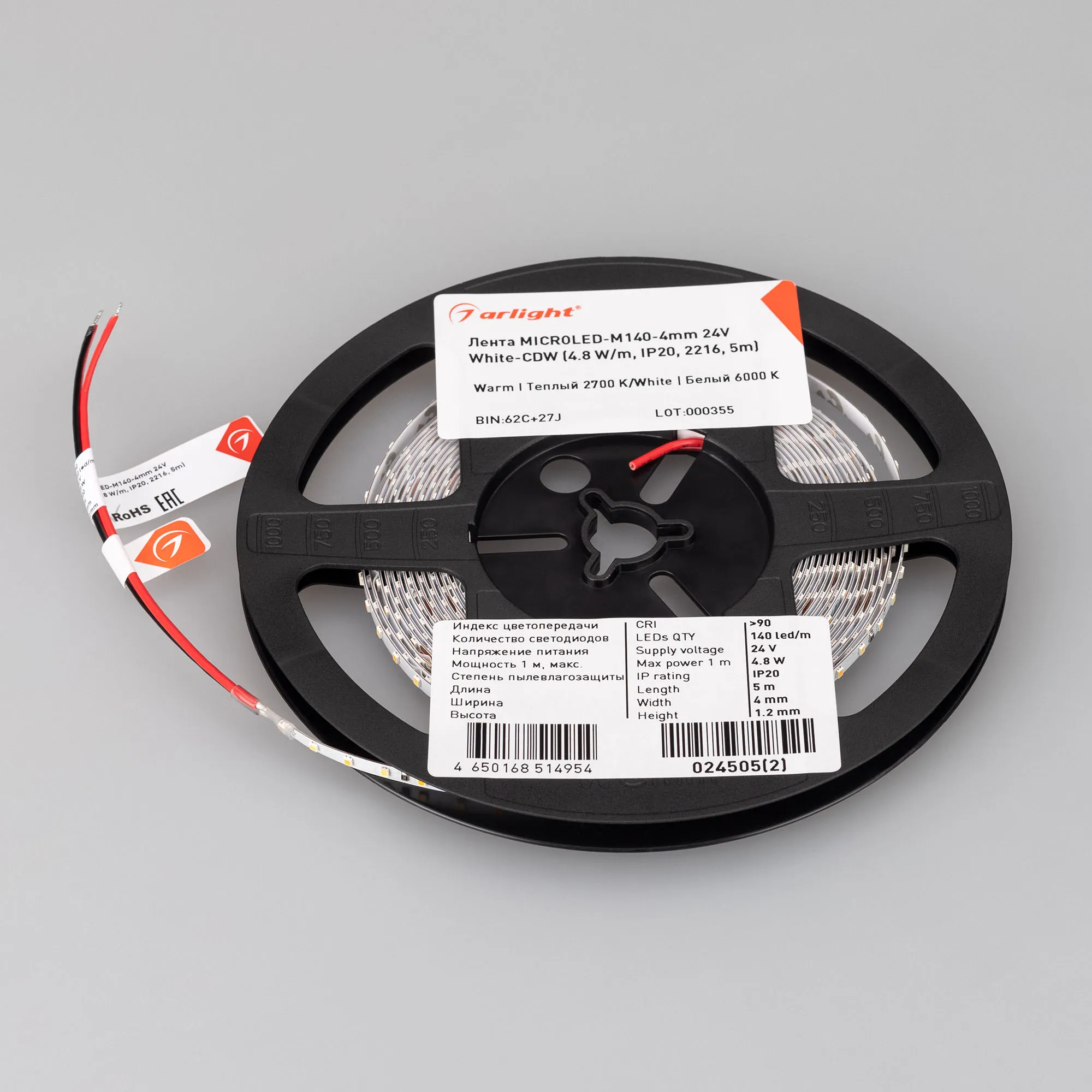 Лента светодиодная MICROLED-M140-4mm 24V White-CDW (4.8 W/m, IP20, 2216, 5m) (Arlight, узкая)