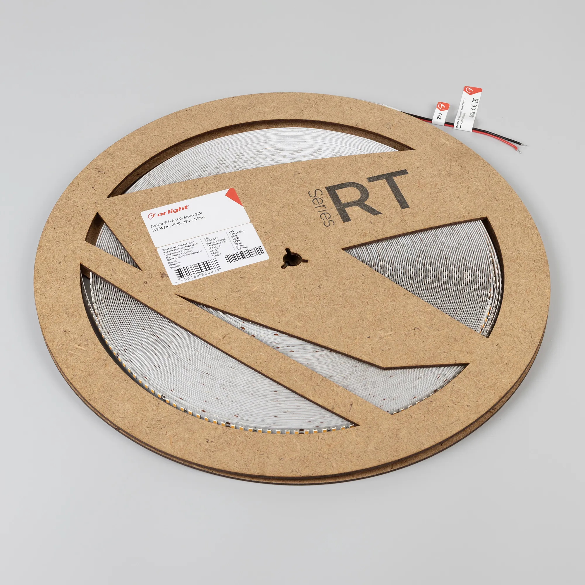 Светодиодная высокоэффективная лента RT серии A160 (монтажная бобина 50 м). Светодиоды SMD 2835, 160 шт/м, белая плата шириной 8 мм, скотч 3M. Цвет ДНЕВНОЙ 4000K, высокая световая эффективность 150 лм/Вт, индекс цветопередачи CRI>85, угол 120°. Питание 24 В, мощность 12 Вт/м (60 Вт на 5 м). Размеры 5000x8x1.5 мм. Мин. отрезок 50 мм, 8 светодиодов. Цена за 1 м. Разрезать перед подключением. Макс. длина подключения 5 м.