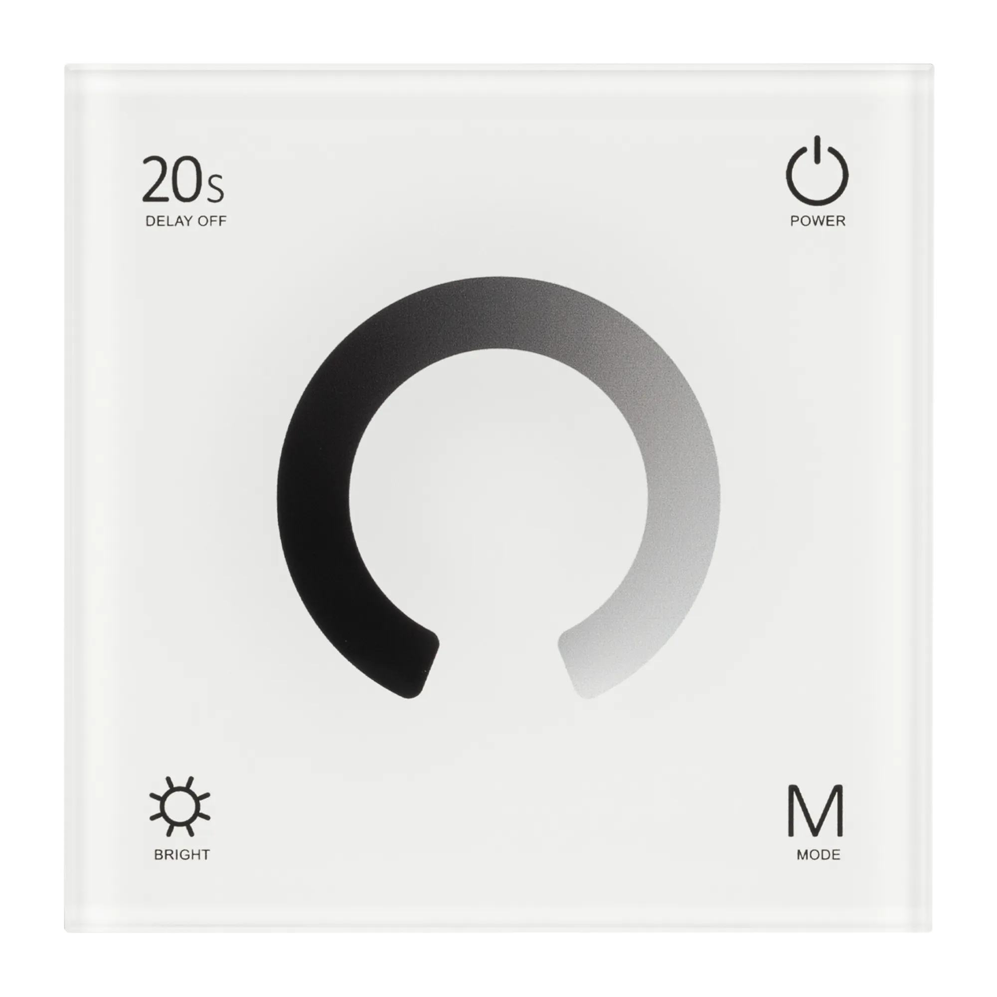 Встраиваемая сенсорная стеклянная панель 2.4 ГГц, цвет белый. Для управления одноцветными источниками света (ШИМ). Управление яркостью с помощью сенсорного кольца. Работает в режиме master/slave и может выполнять функцию независимого контроллера. Питание/рабочее напряжение 12-24VDC, 4 параллельных канала по 3А максимальной нагрузки на канал, максимальная суммарная мощность 144-288W. Габариты 86х86х33 мм. Панель совместима с диммерами серии SMART. Возможно управление пультами (см. совместимые товары) или другими панелями.