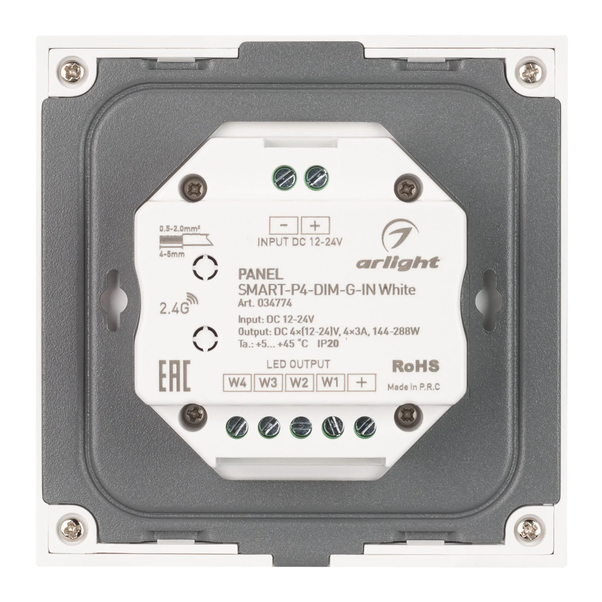 В магазине Мельковский Свет Вы можете купить "Панель SMART-P4-DIM-G-IN White (12-24V, 4x3A, Sens, 2.4G) (Arlight, IP20 Пластик, 5 лет)"