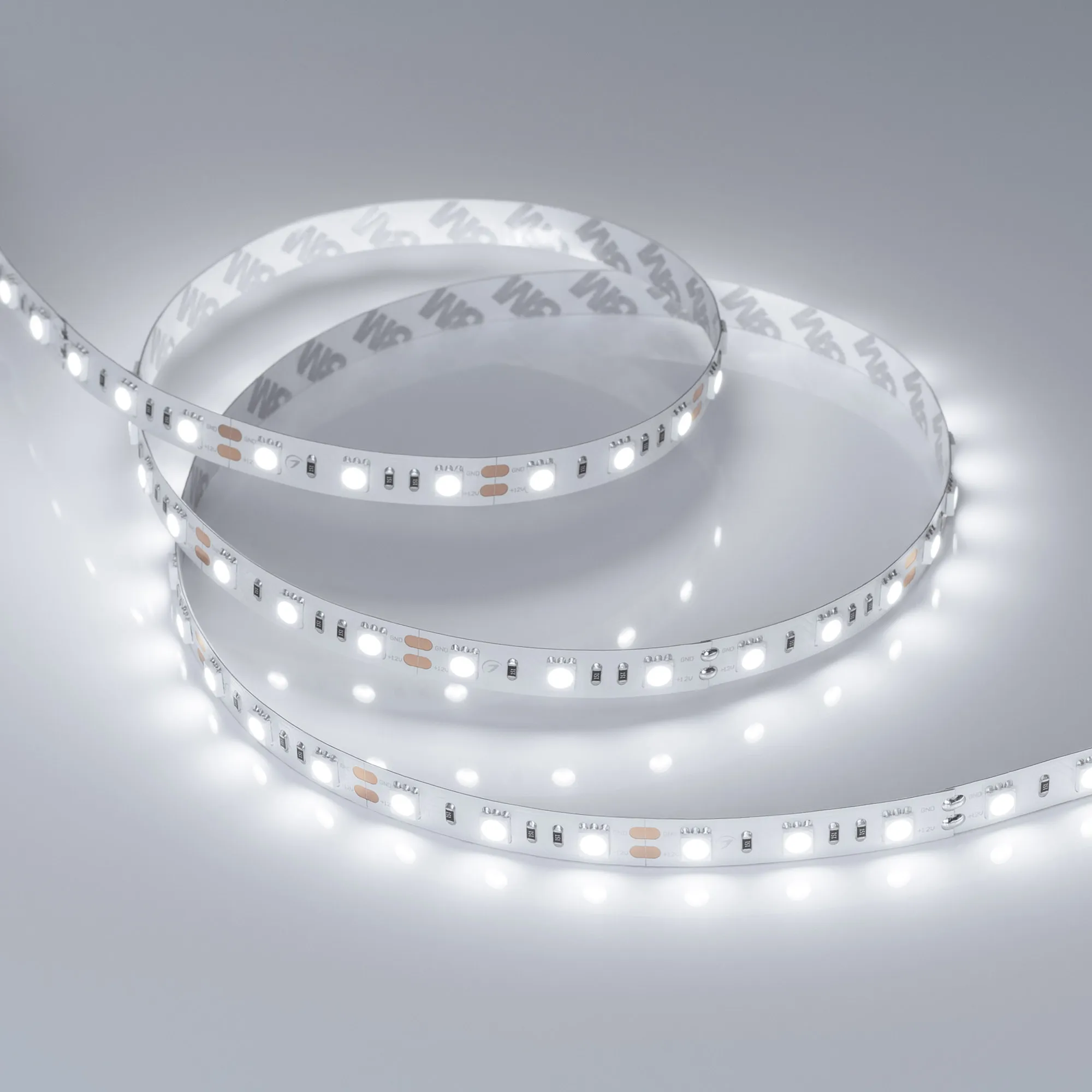 Светодиодная лента RT серии B60. Светодиоды SMD 5060, 60 шт/м, белая плата шириной 10 мм, скотч 3M. Цвет БЕЛЫЙ 6000K, индекс цветопередачи CRI>85, угол 120°. Питание 12 В, мощность 14.4 Вт/м (72 Вт на 5 м). Размеры 5000x10x2.2мм. Мин. отрезок 50 мм, 3 светодиода. Цена за 1 м. Обязательна установка на профиль.