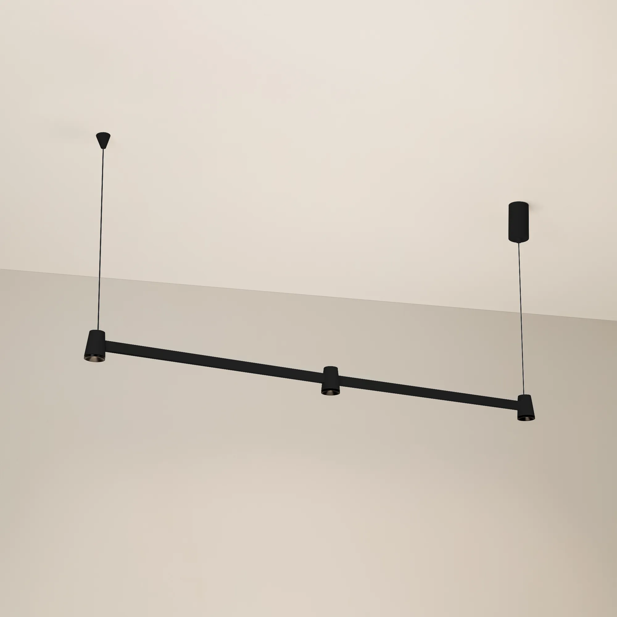 Поставка под заказ от 50 шт. Подвесной светильник. Мощность 16 Вт, св. поток 1010 лм, 63 лм/Вт, теплый 4000 K, CRI>90, угол 35°, напряжение питания 230 В. Черный корпус из алюминия, степень защиты IP20. Размер: длина 1039 мм, ширина 40 мм, высота 55 мм, размер чаши: диаметр 50 мм, высота 90 мм. Монтаж подвесной, длина подвеса 1300 мм. Драйвер 27-38 В, 500 мА, пульсация <1%.