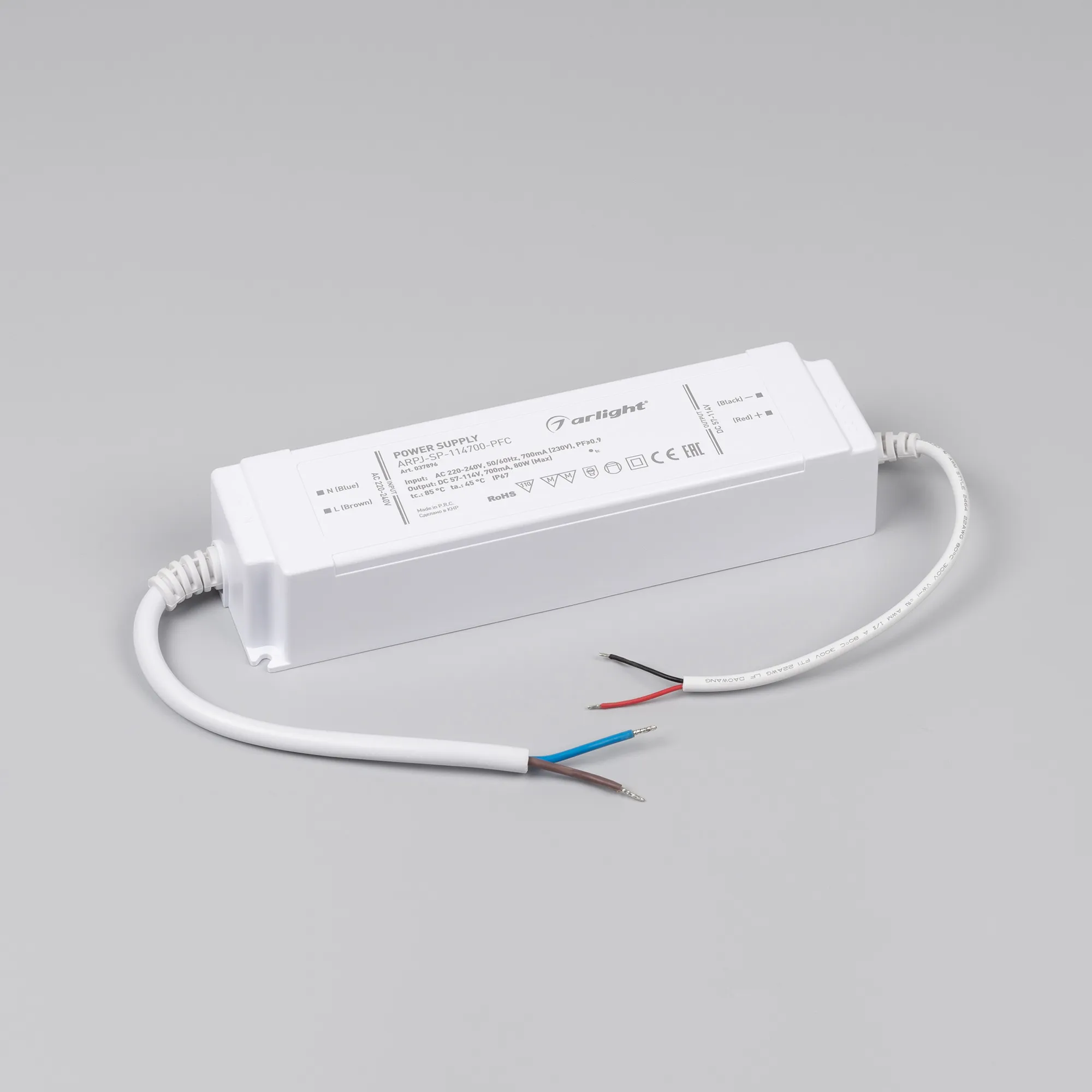 Блок питания ARPJ-SP-114700-PFC (80W, 57-114V, 0.7A) (Arlight, IP67 Пластик, 5 лет)
