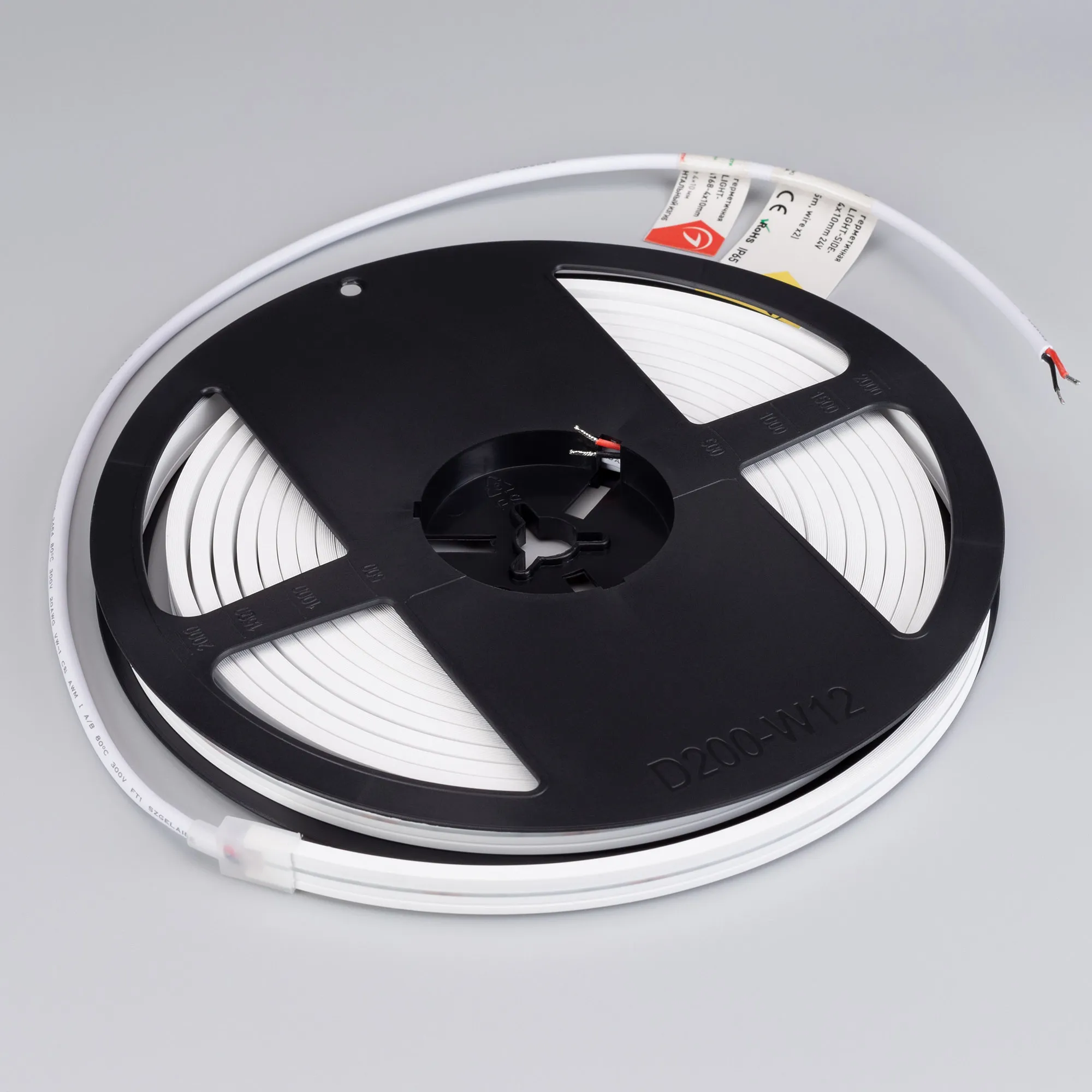 Гибкая герметичная лента (неон серии MOONLIGHT), сечение 4×10 мм. Светодиоды SMD 2835 168 шт/м. Цвет свечения БЕЛЫЙ (6000 К), индекс цветопередачи CRI>90, световой поток 270 лм/м, угол излучения 110°. Мощность 7.2 Вт/м, питание 24 В. Класс пылевлагозащиты IP65. Размеры 5000×10×4 мм. Мин. отрезок 41.66 мм. Горизонтальный изгиб SIDE, минимальный радиус изгиба 30 мм. Вывод кабеля с двух сторон. Катушка 5 м. Цена за 1 м. Гарантия 3 года.