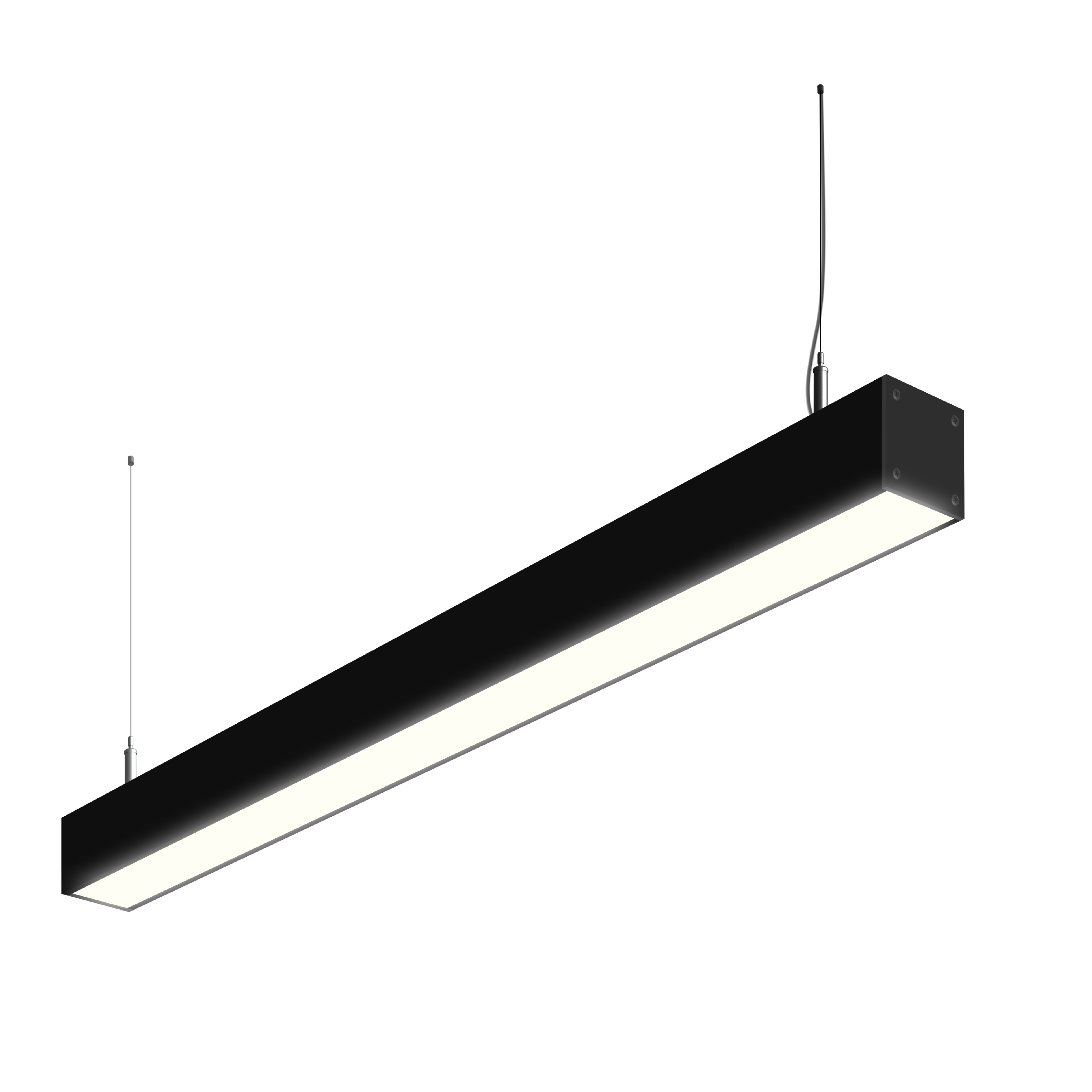 Подвесной светильник MS-LINEAR Линейный размер профиля 77х74мм длиной 2000мм мощностью 80W. Светильник собирается в алюминиевом корпусе с матовым рассеивателем, который дает равномерную засветку по всей площади.