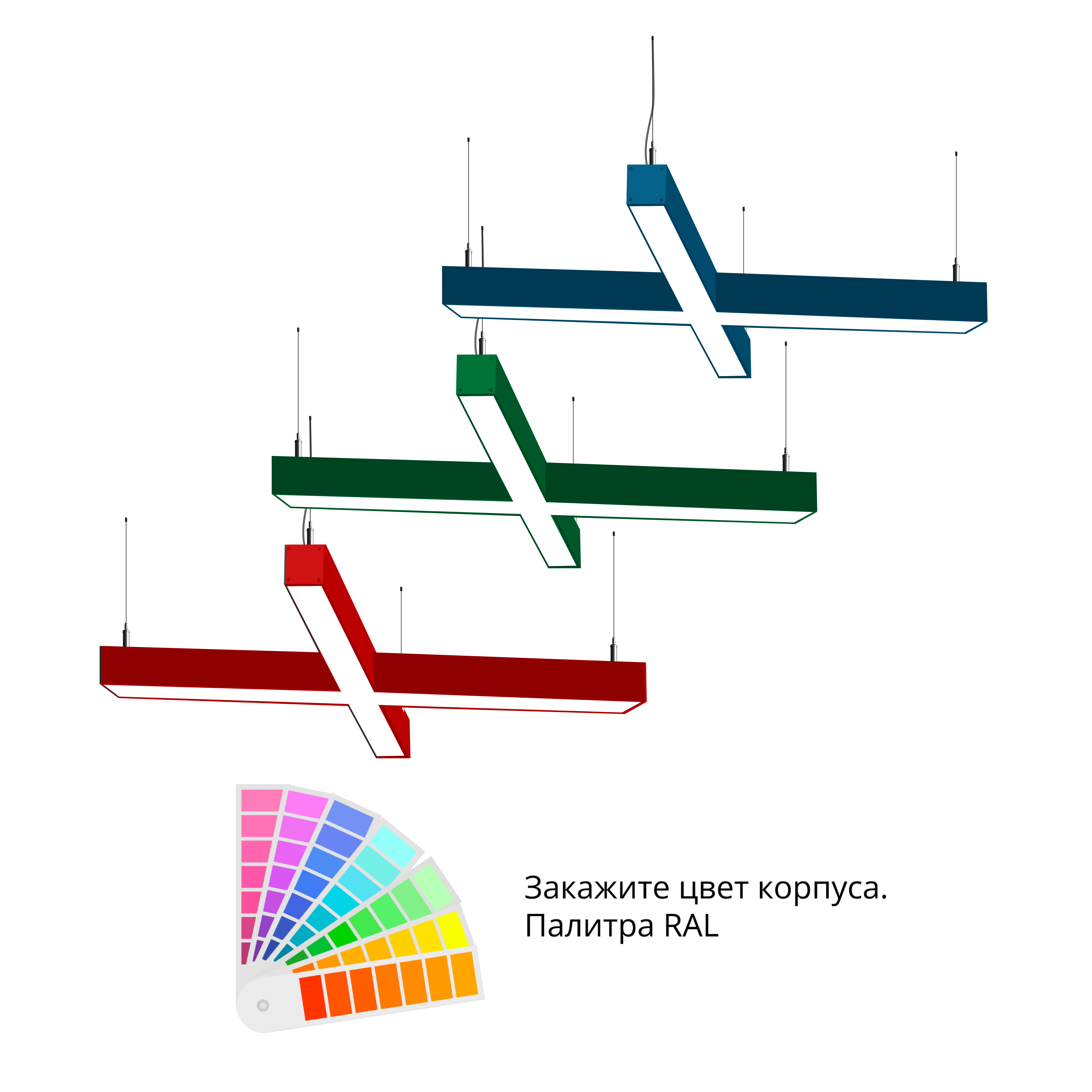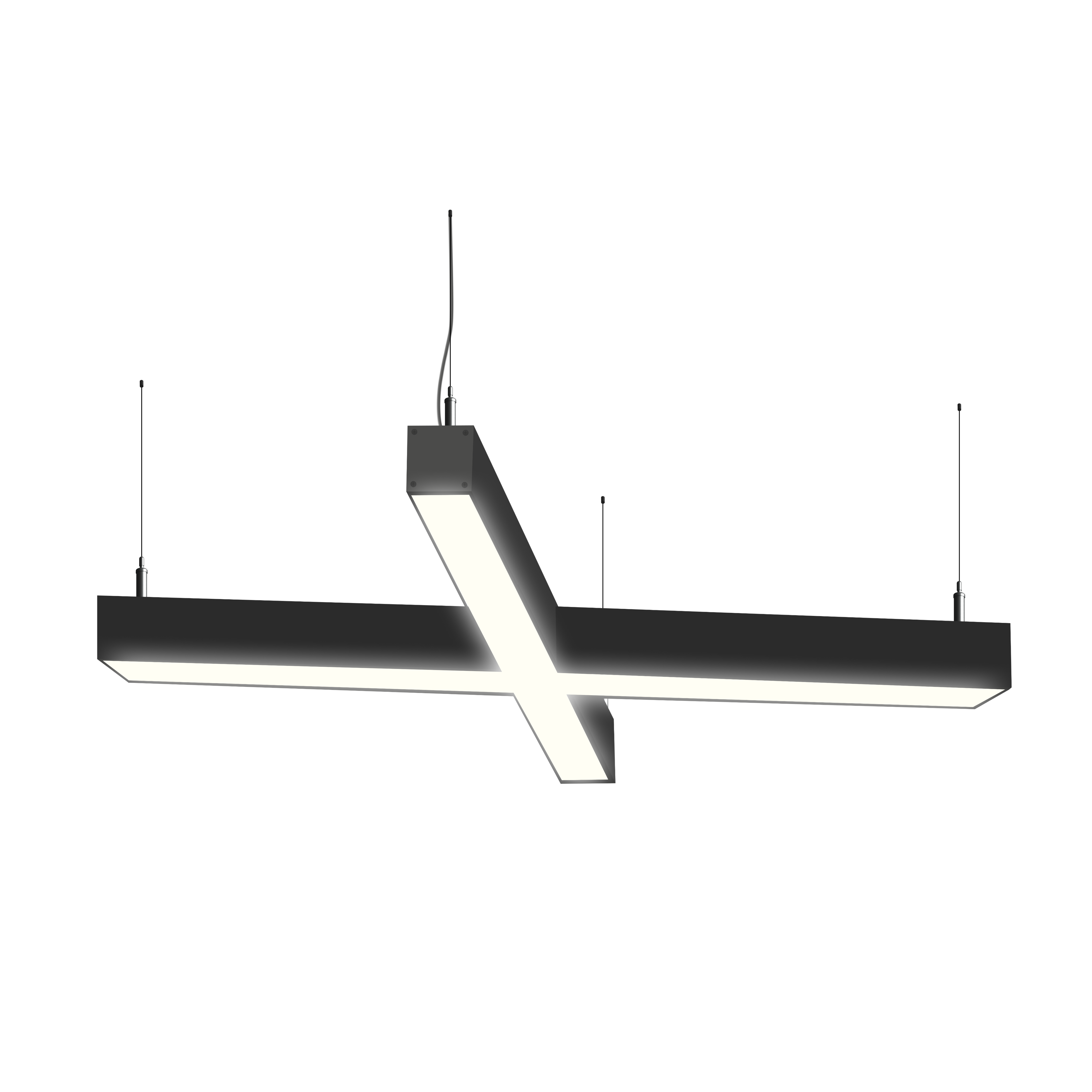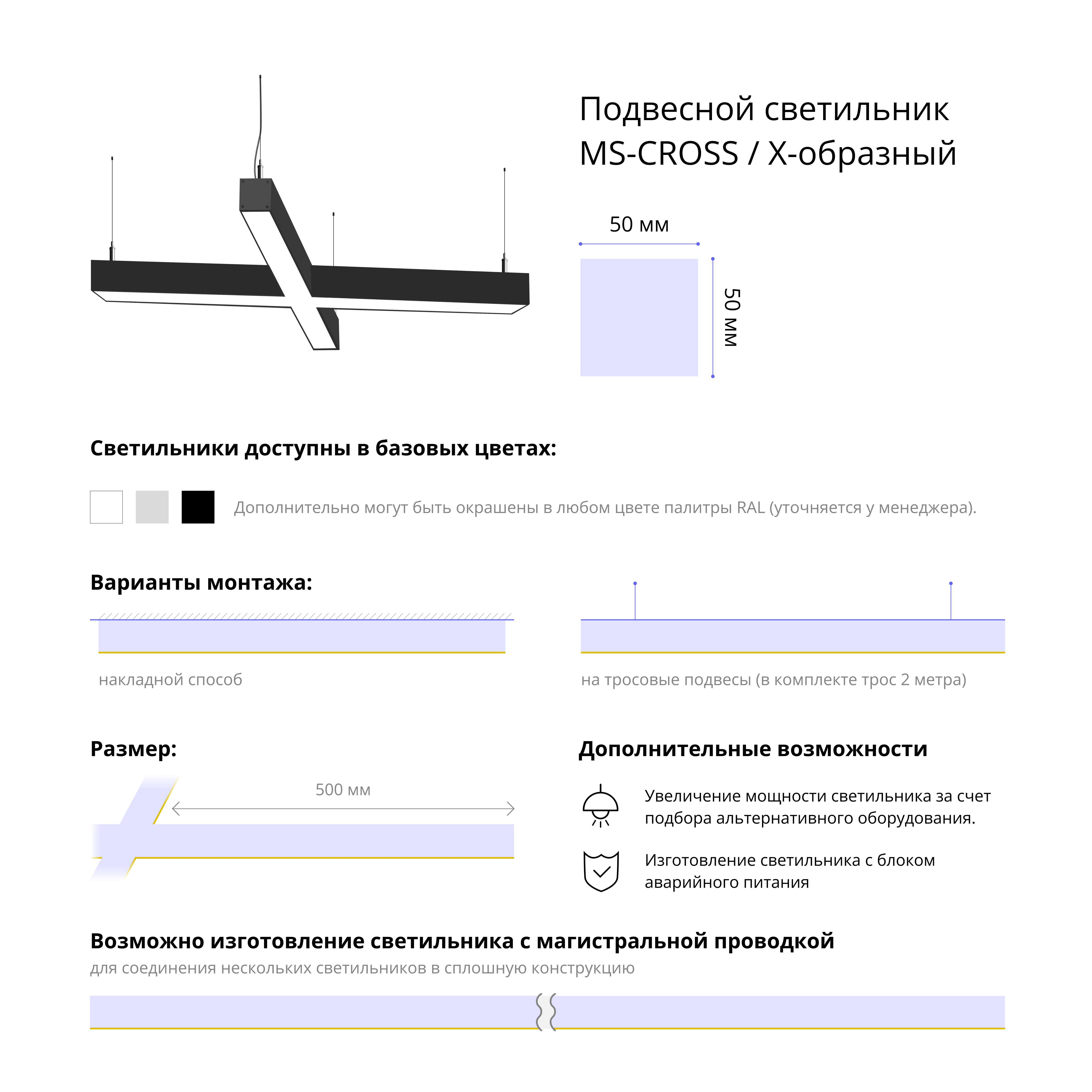 Cветодиодный фигурный светильник MS-CROSS X-образный размер профиля 50x50мм длиной 4х500мм мощностью 40W. Светильник собирается из алюминиевого основния с матовым рассеивателем, который дает равномерную засветку по всей площади.
