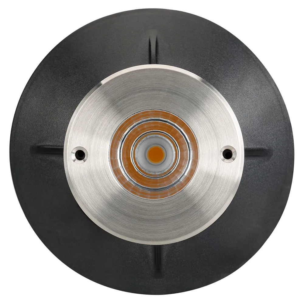 Встраиваемый светодиодный светильник для грунта и пола. Мощность 6Вт, световой поток 360лм, цвет ТЕПЛЫЙ 3000К. CRI(Ra)>80, угол 15°. Круглый влагозащищенный корпус IP67, нержавеющая сталь 316. Экран закалённое стекло. Выдерживает нагрузку 500кг. Питание AC220-240V, 6Вт. Размер DxH Ø65x88мм. Установка в отверстие Ø112x88мм.
