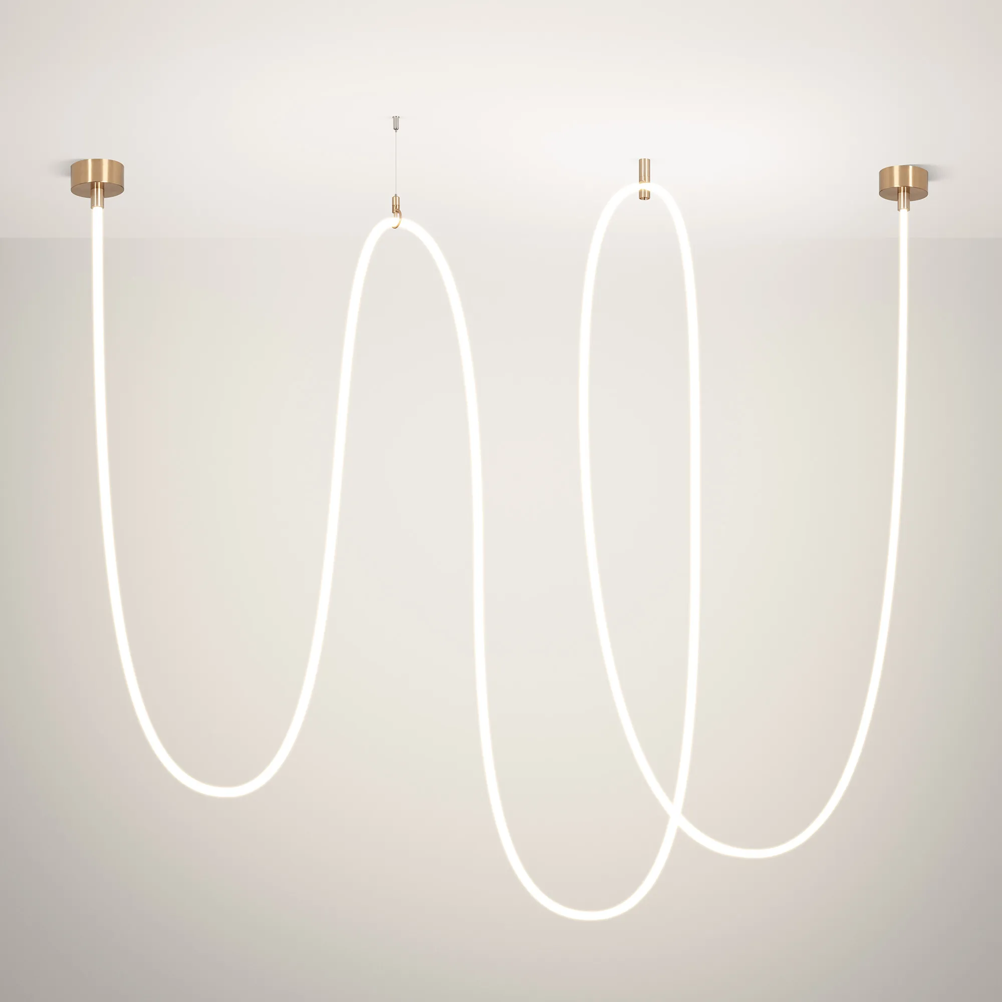 Подвесной светильник. Мощность 110 Вт, св. поток 7455 лм, 67 лм/Вт, дневной 4000 K, CRI>90, угол 360°, напряжение питания 230 В. Золотой круглый корпус из стали, силиконовая герметичная лента, степень защиты IP20. Размер: общая высота чаши 85 мм, высота чаши без вывода под неон 50 мм, диаметр вывода под неон 35 мм, диаметр чаши 130 мм, диаметр силиконовой герметичной ленты 18 мм, длина силиконовой герметичной ленты 10000 мм. Монтаж накладной. Блок питания 24 В, 2500 мА, пульсация <5% (2 шт.). Аксессуары (подвес и крепление) приобретаются отдельно.