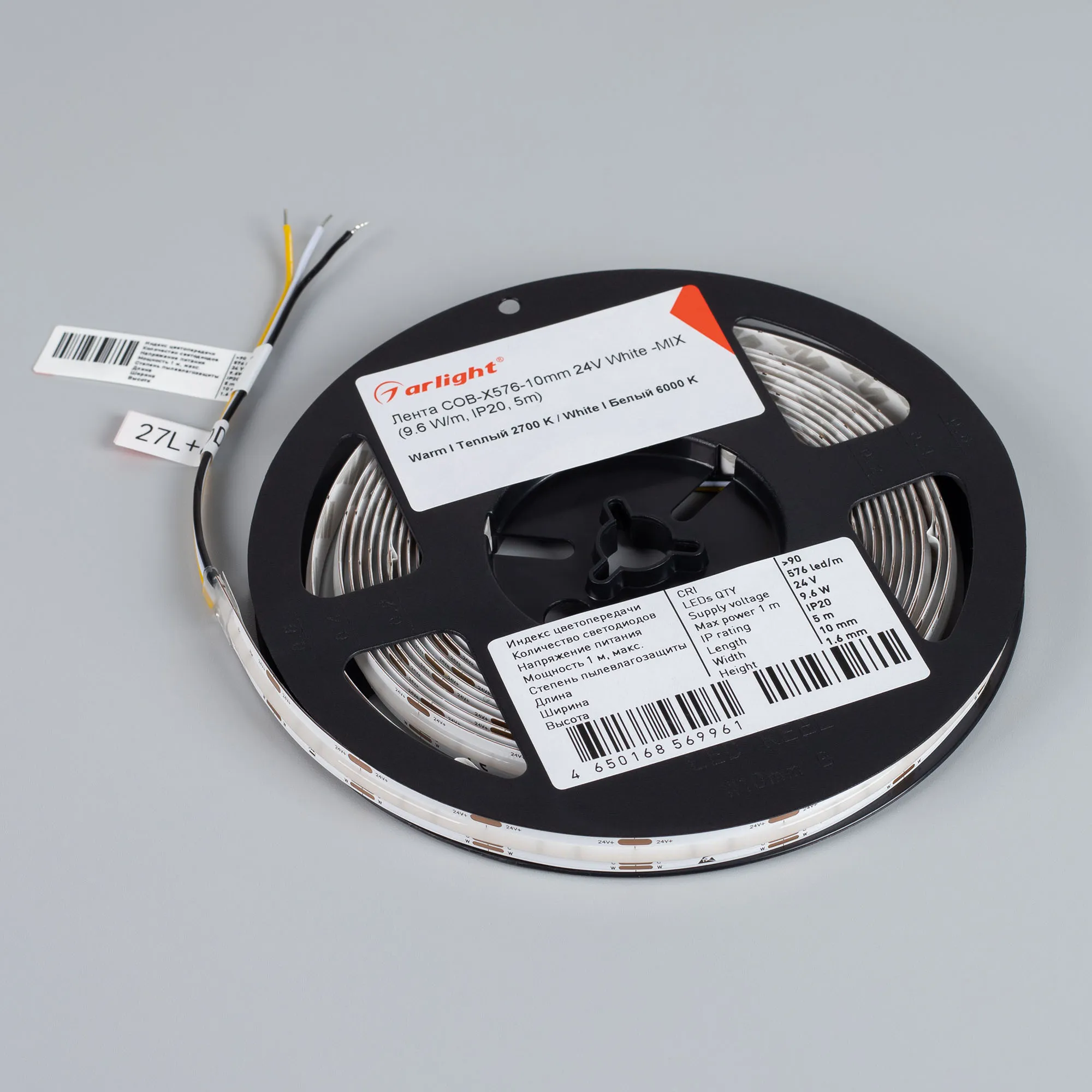 Лента светодиодная COB-X576-10mm 24V White-MIX (9.6 W/m, IP20, 5m) (Arlight, Изменяемая ЦТ)