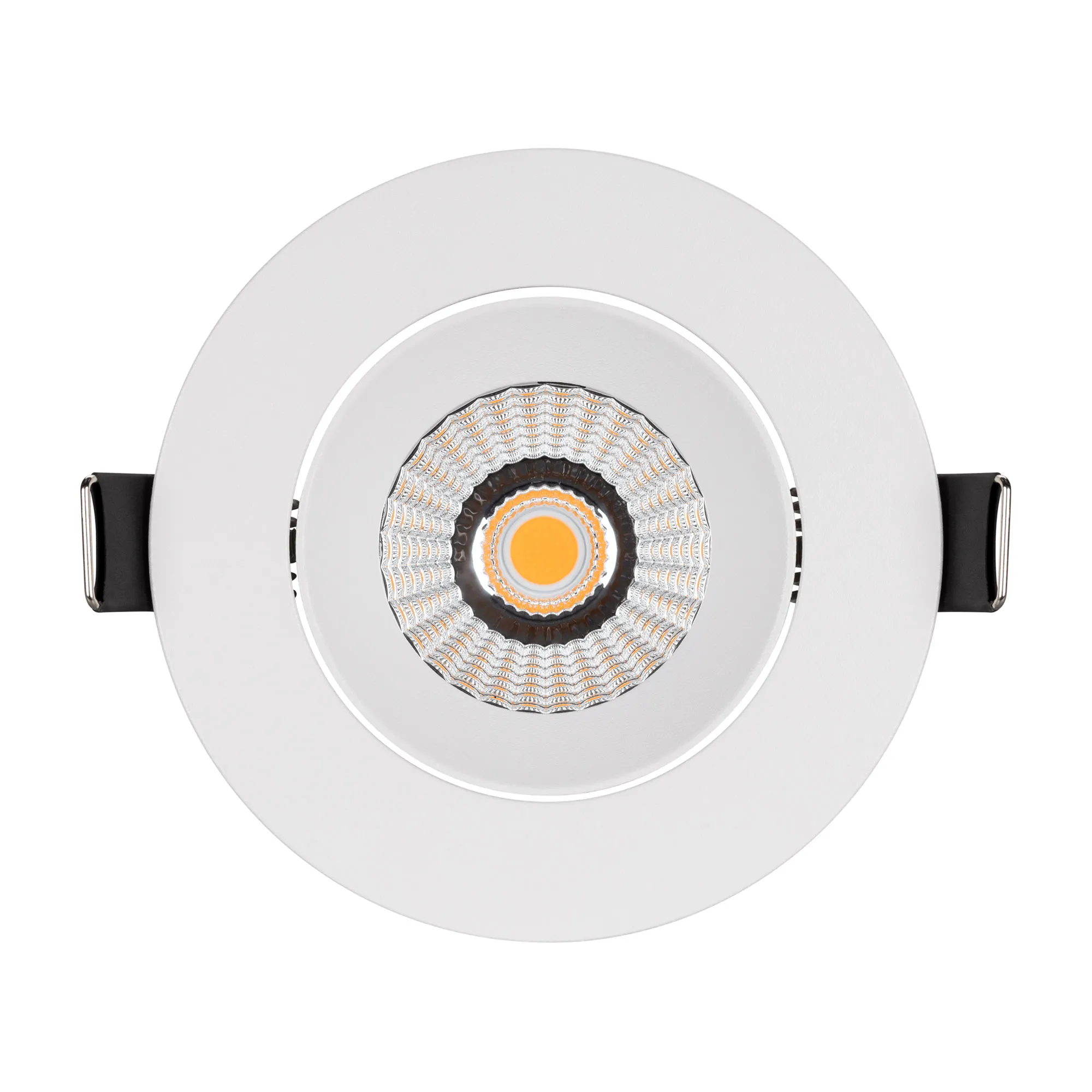 Встраиваемый поворотный светильник даунлайт. Мощность 10 Вт, св. поток 910 лм, 90 лм/Вт, дневной 4000 K, CRI>90, угол 60°, напряжение питания 230 В. Белый круглый корпус из алюминия, экран PMMA, степень защиты IP54. Размер: диаметр 94 мм, высота 75 мм. Монтаж встраиваемый, установочное отверстие: диаметр 77 мм. Драйвер IP54, 20-40 В, 250 мА, пульсация <1%.