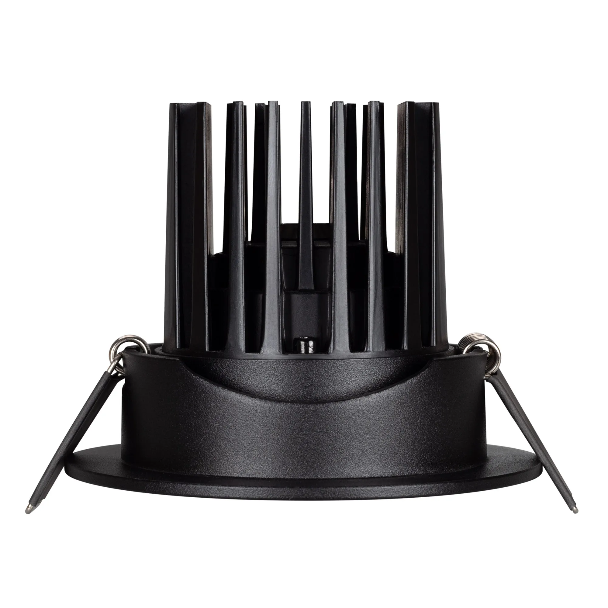 Встраиваемый поворотный светильник даунлайт. Мощность 10 Вт, св. поток 910 лм, 90 лм/Вт, дневной 4000 K, CRI>90, угол 36°, напряжение питания 230 В. Чёрный круглый корпус из алюминия, экран PMMA, степень защиты IP54. Размер: диаметр 94 мм, высота 75 мм. Монтаж встраиваемый, установочное отверстие: диаметр 77 мм. Драйвер IP54, 20-40 В, 250 мА, пульсация <1%.