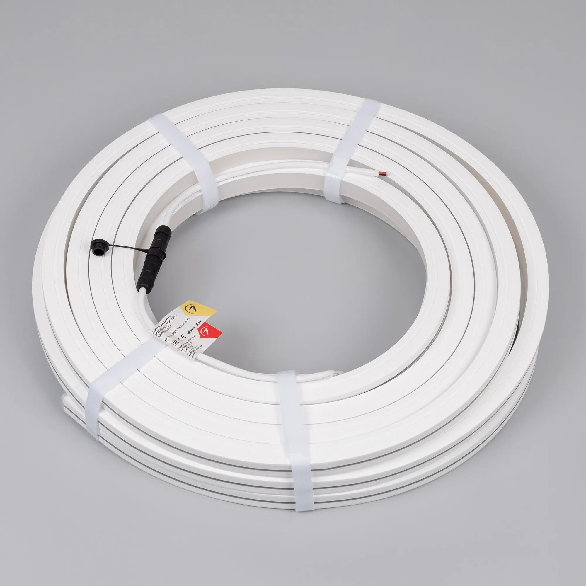 Гибкая герметичная лента (неон серии MOONLIGHT), сечение 20×20 мм. Светодиоды CSP 280 шт/м. Цвет свечения ДНЕВНОЙ (4000К), индекс цветопередачи CRI>90, световой поток 450 лм/м, угол излучения 114°. Мощность 10 Вт/м, питание 24 В. Класс пылевлагозащиты IP67. Размеры 15000×20×20 мм. Мин. отрезок 50 мм. Вертикальный изгиб TOP, минимальный радиус изгиба 180 мм. Катушка 15 м. Цена за 1 м. Гарантия 5 лет.