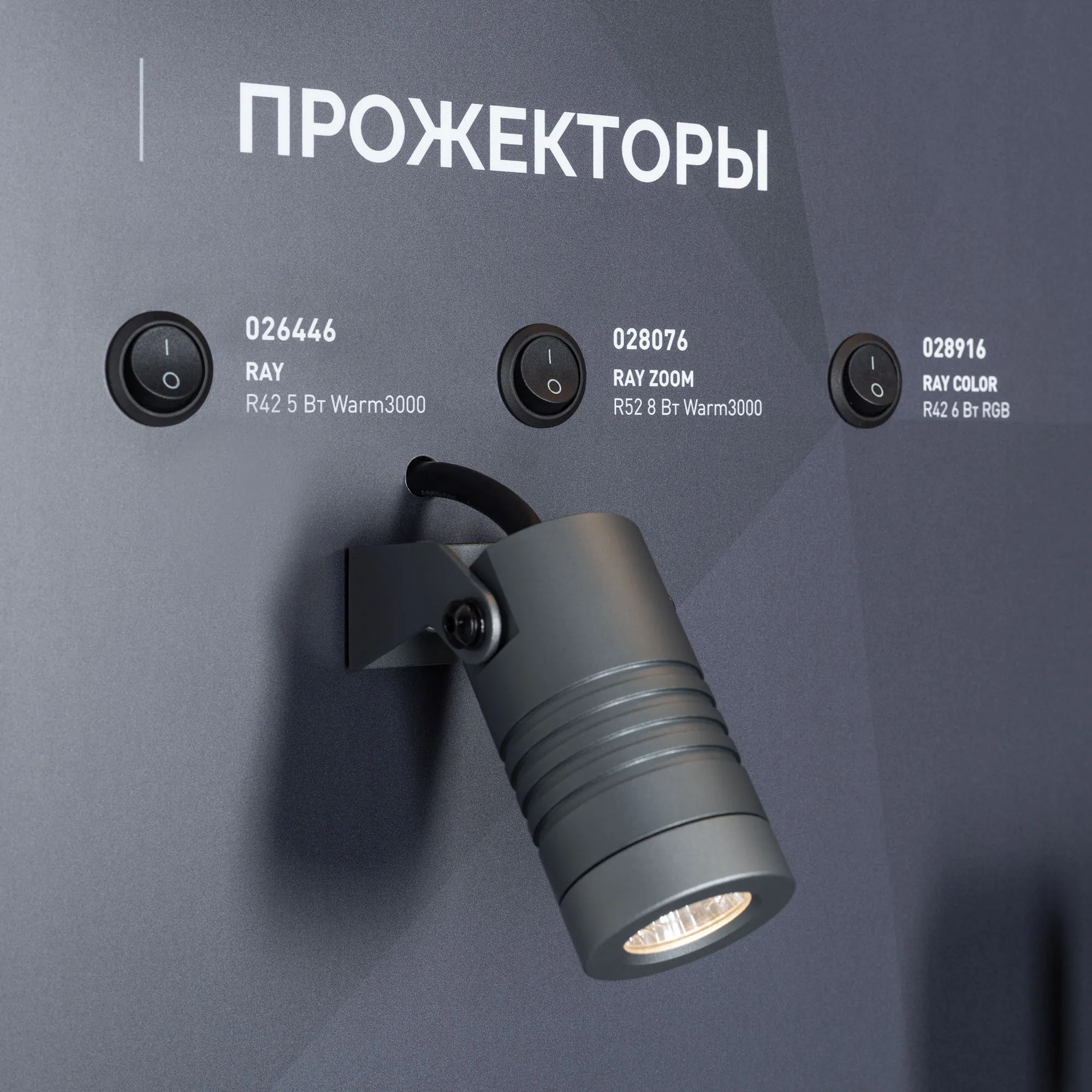 Стенд НАРУЖНОЕ ОСВЕЩЕНИЕ. Потолочные, напольные, грунтовые, подводные светильники и прожекторы. Материал - композит 3 мм, пленка, печать.
