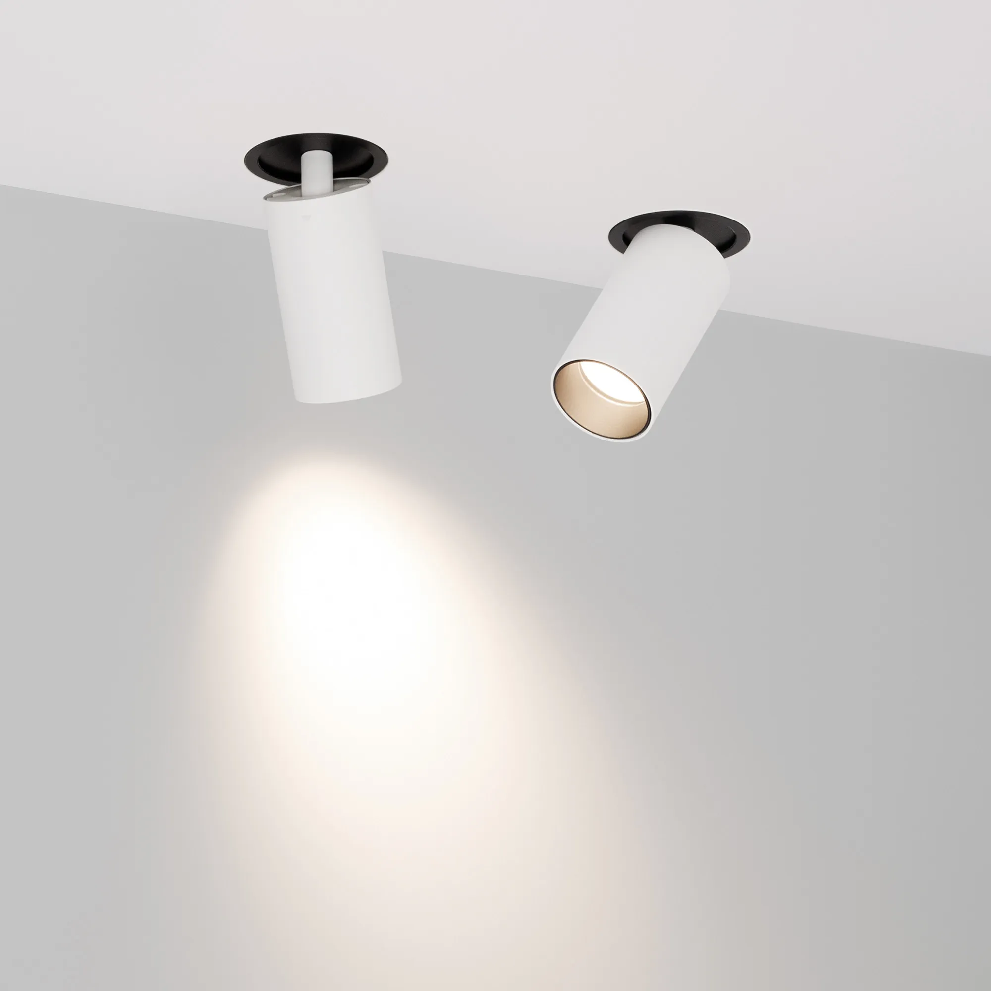 Светильник встраиваемый поворотный. Мощность 7 Вт, св. поток 580 лм, 82 лм/Вт, дневной 4000 K, CRI>90, угол 36°, напряжение питания 230 В. Белый круглый корпус из алюминия, экран PMMA, степень защиты IP40. Размер: диаметр 35 мм, высота светового модуля 65 мм. Угол поворота 360°, угол наклона 90°. Монтаж встраиваемый, установочное отверстие: диаметр 55 мм, глубина 73 мм. Драйвер в комплекте 27-50 В, 150 мA, пульсация <1%.