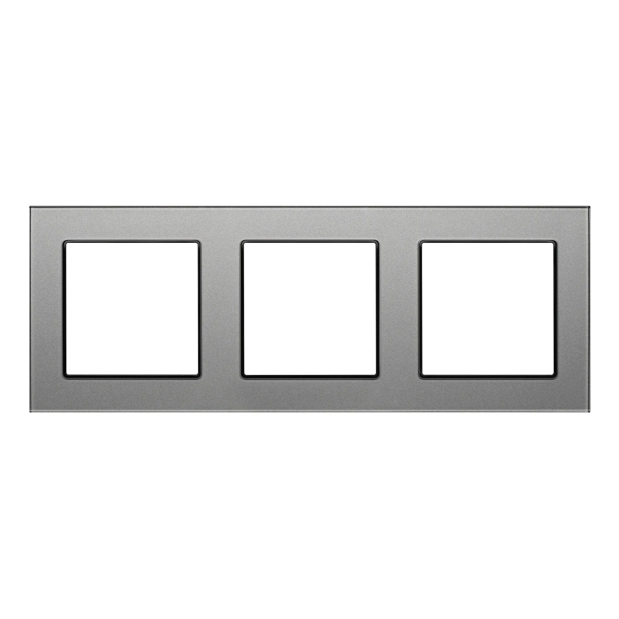 Рамка стеклянная на 3 поста, под встраиваемый механизм (квадрат). Цвет - серый. Ориентации монтажа - горизонтальная.