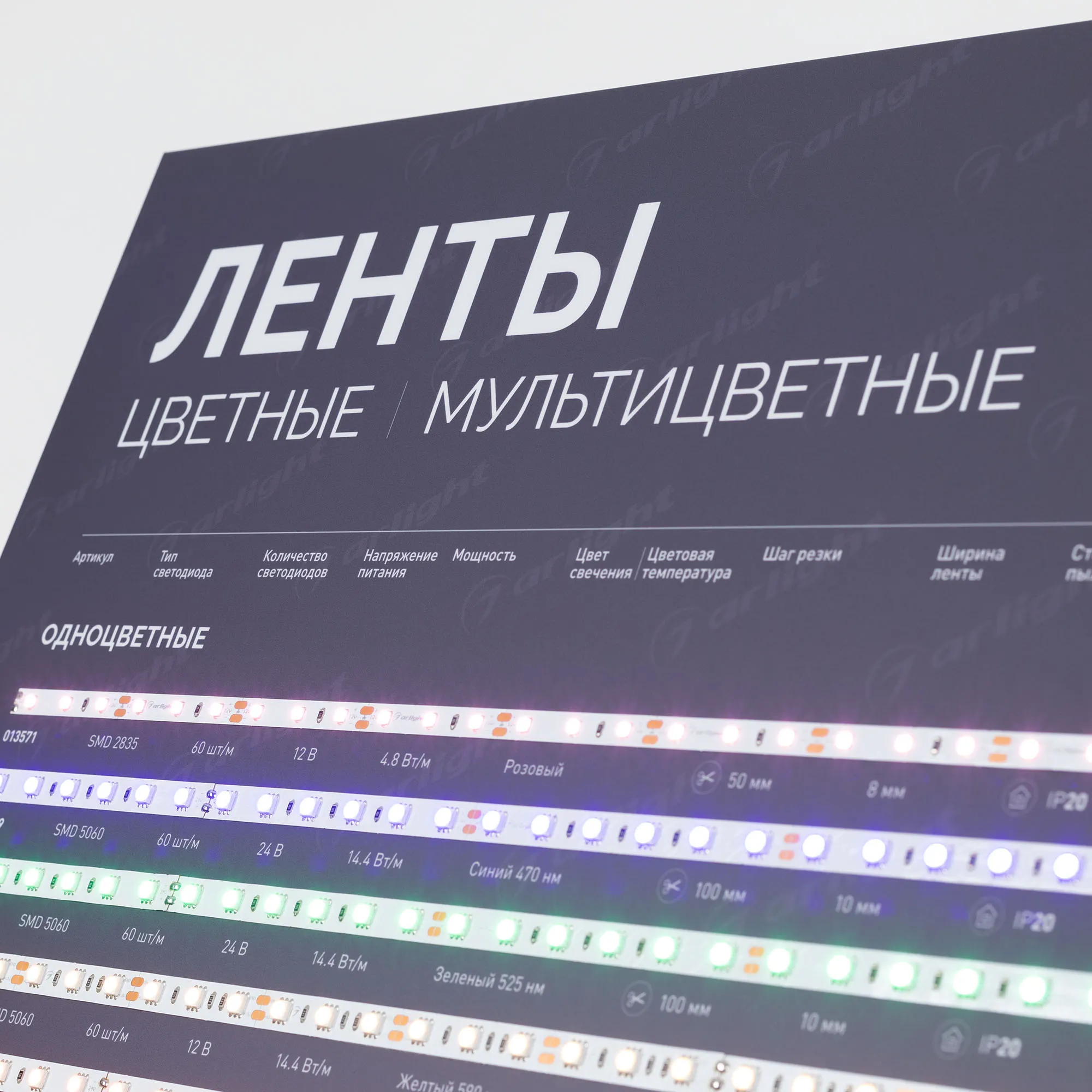 В магазине Мельковский Свет Вы можете купить "Стенд Ленты Мультицветные ARL-RGB-04-830x600mm (230V) (Arlight, -)"