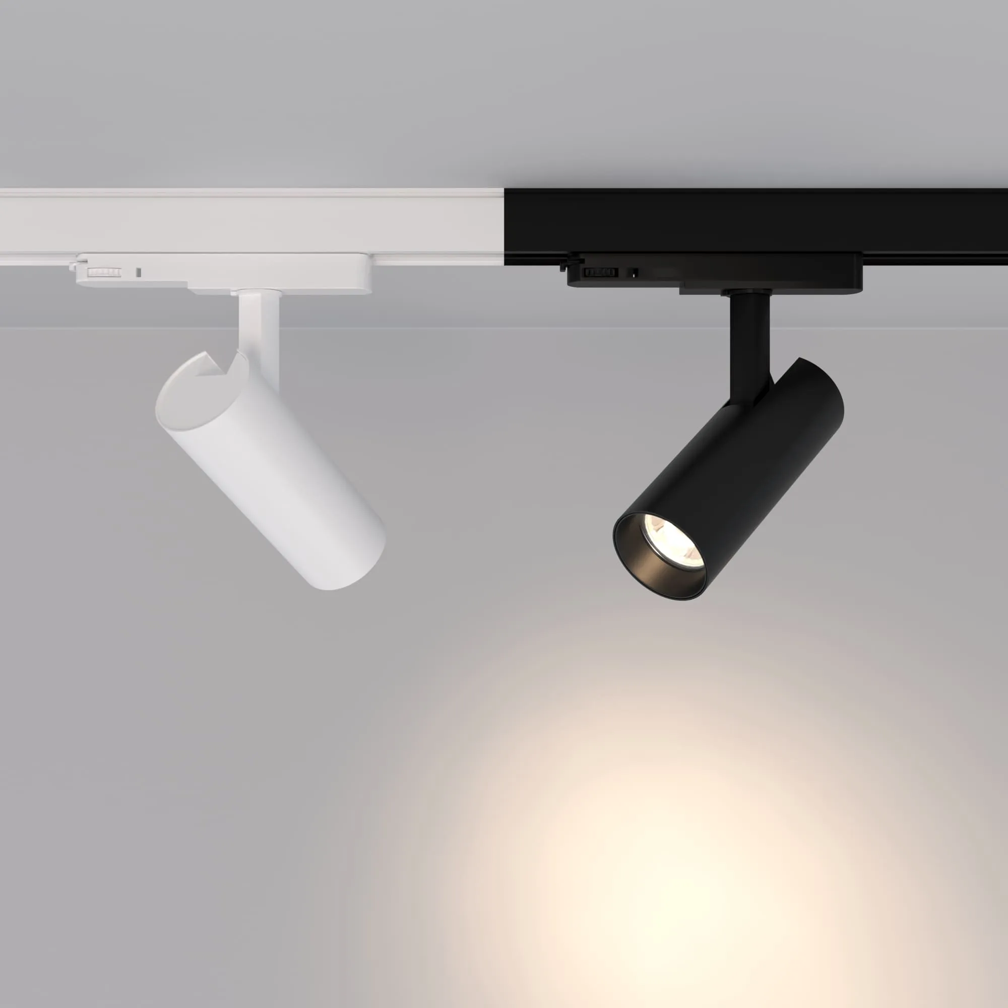 Светильник для треков/шин 4 провода. Мощность 10 Вт, св. поток без решетки honeycomb 1000 лм, 100 лм/Вт, с решеткой honeycomb 660 лм, 66 лм/Вт, теплый 3000 K, CRI>90, угол 15°, напряжение питания 230 В. Белый круглый корпус из алюминия, материал линзы PMMA, степень защиты IP20. Размер: диаметр 55 мм, длина световой части 141 мм. Монтаж на трек 3-фазный. Драйвер встроенный 25-42 В, 250мА., пульсация <5%.