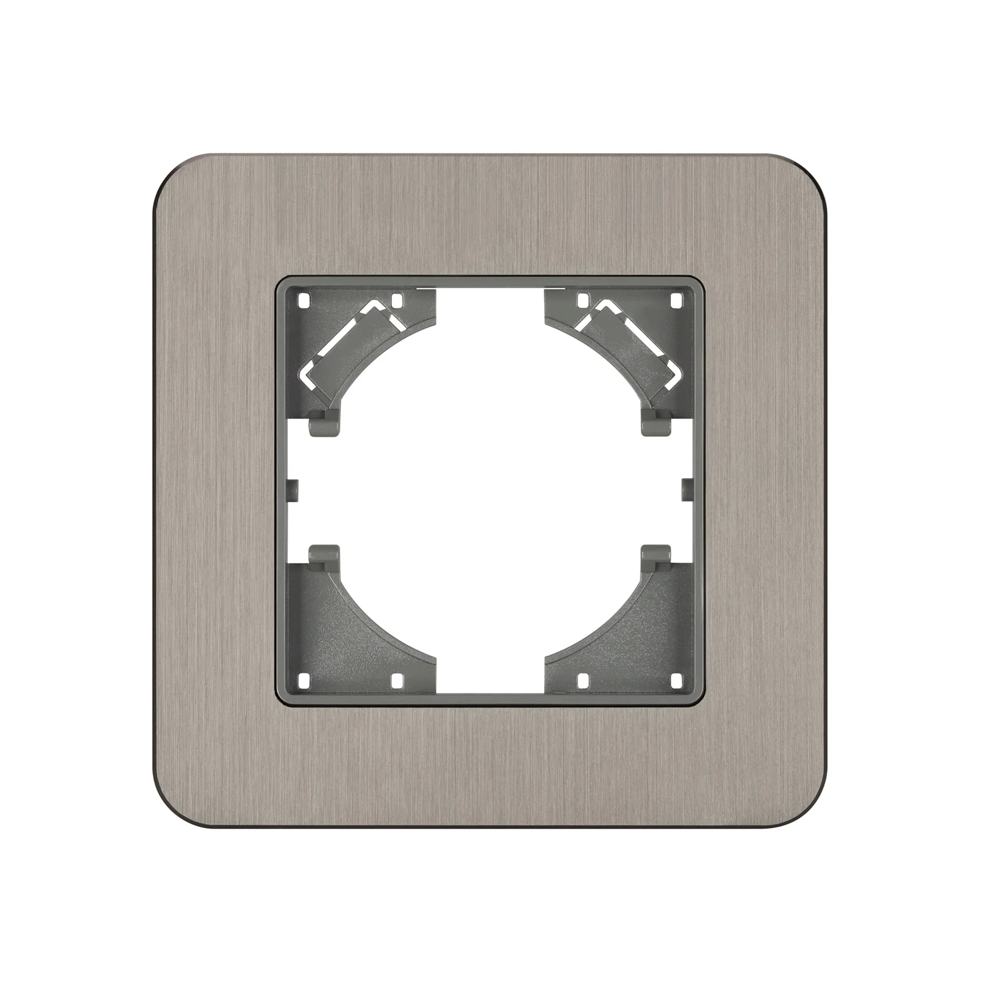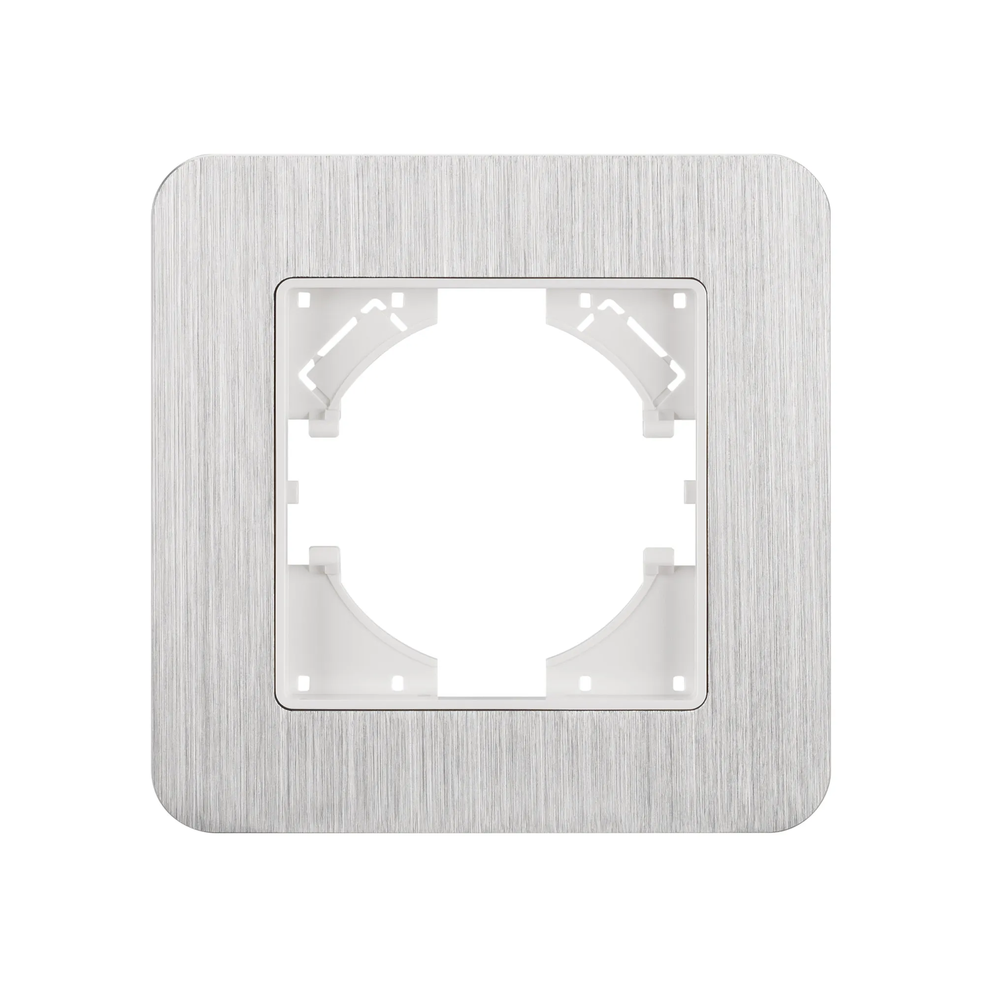 Рамка алюминиевая на 1 пост, под встраиваемый механизм. Цвет - серебристый. Среднего уровня герметичности IP20. Ориентация монтажа - горизонтальная (основным ориентиром служат посадочные выступы для накладки механизма).