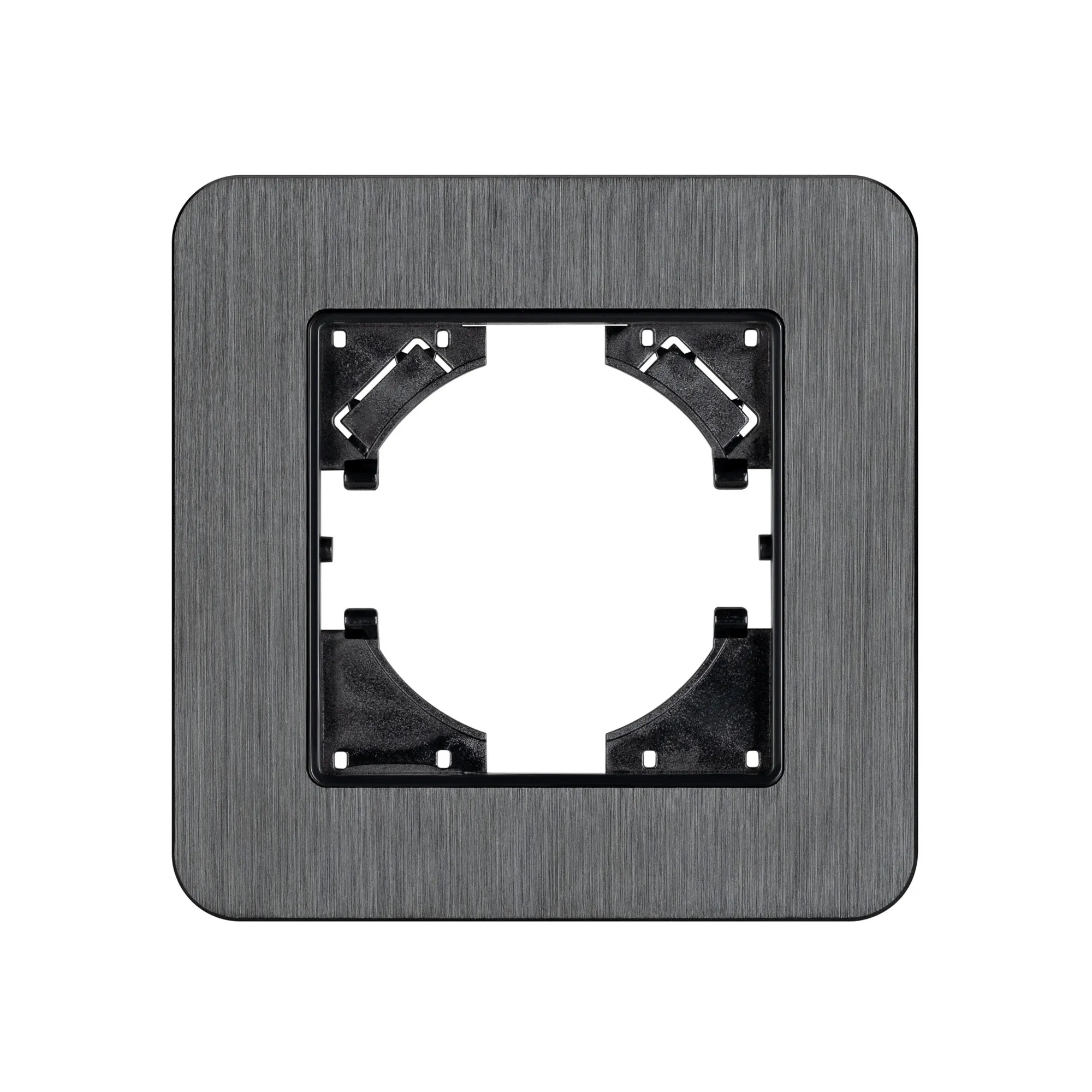 Рамка алюминиевая на 1 пост, под встраиваемый механизм. Цвет - черный. Среднего уровня герметичности IP20. Ориентация монтажа - горизонтальная (основным ориентиром служат посадочные выступы для накладки механизма).
