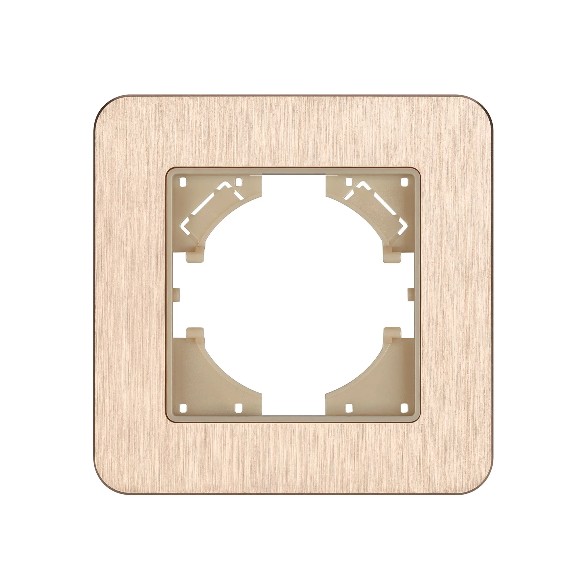 Рамка алюминиевая на 1 пост, под встраиваемый механизм. Цвет - золотой. Среднего уровня герметичности IP20. Ориентация монтажа - горизонтальная (основным ориентиром служат посадочные выступы для накладки механизма).
