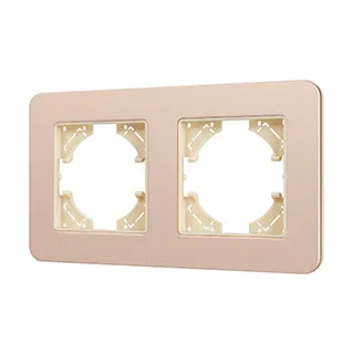 Рамка алюминиевая на 2 поста, под встраиваемый механизм. Цвет - золотой с Soft-Touch покрытием. Среднего уровня герметичности IP20. Ориентация монтажа - горизонтальная (основным ориентиром служат посадочные выступы для накладки механизма).